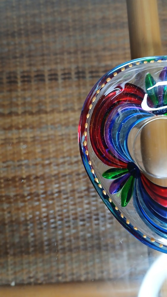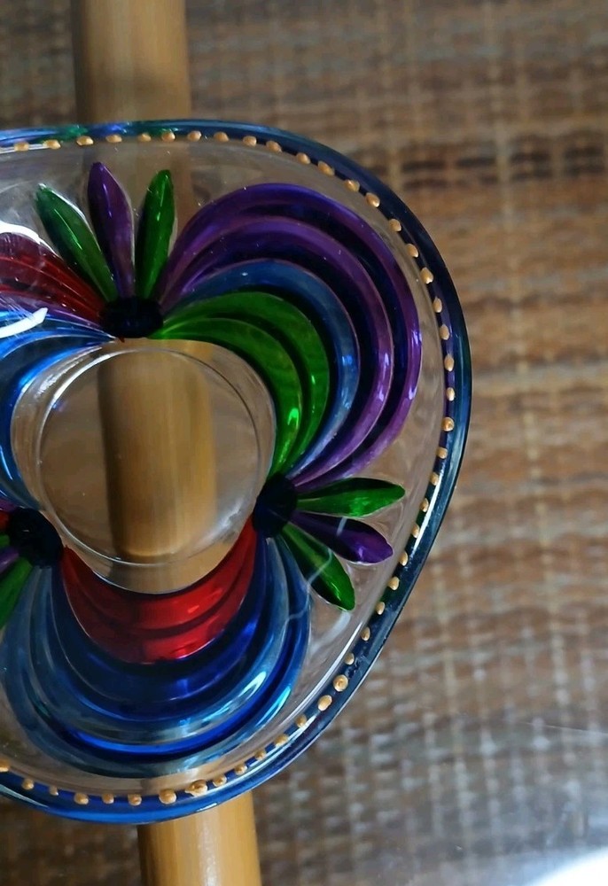 Venezia Italy Hand Painted Glass Murano Ring Trinket Dish Blue Red Yellow Teal. 3.25" in diameter