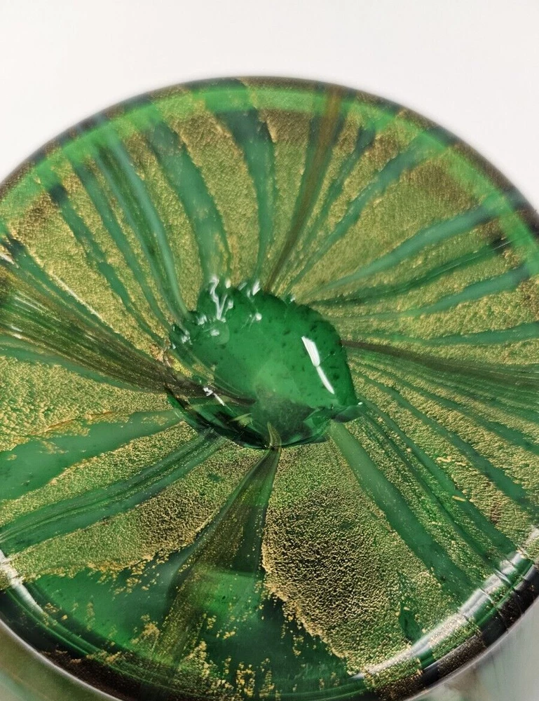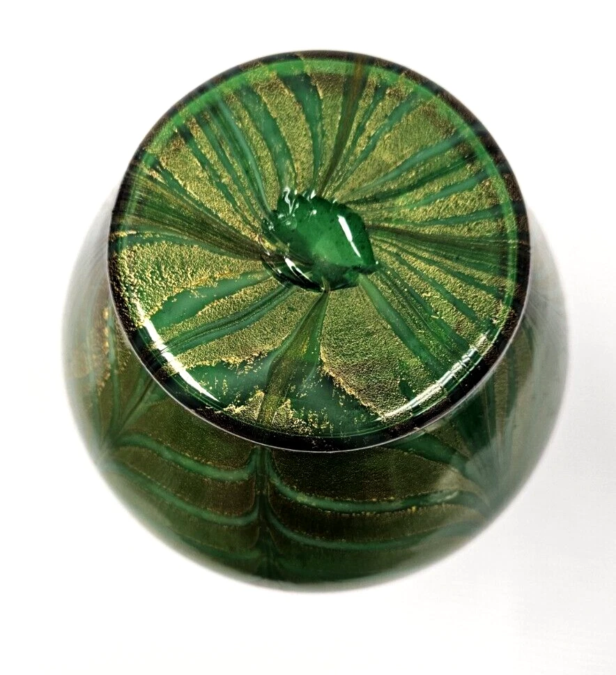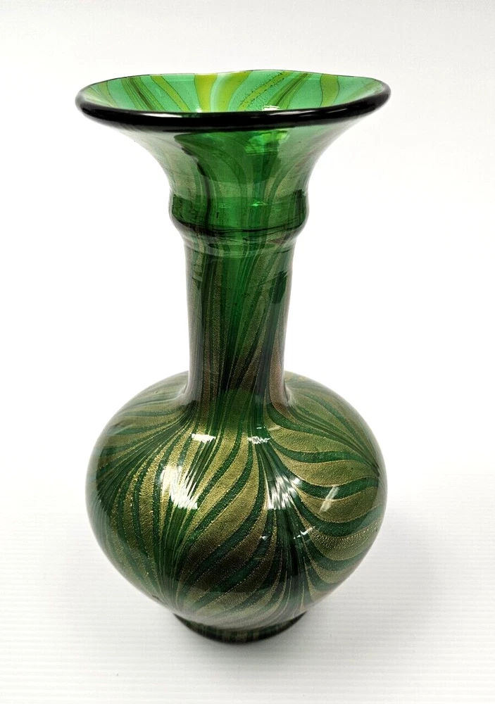 Murano Vetro Artistico Veneziano Fenicio Green and Gold Adventurine Vase We believe this is Murano Fenicio (similar to pulled feathers). In very good vintage condition. The vase has no chips, no cracks or repairs. Hardly any signs of wear. Dimension: 9" tall x 3.5" diameter (at top) x 3" diameter (at base) x 5 1/4" diameter (at widest point) Please examine the photos as they are part of the description. We offer 100% customer satisfaction, FREE returns and 5-star Ebay service! Buy with confidence! From a smoke-free, odor-free environment! Shipping insurance, delivery confirmation and packaging costs included in shipping costs. Thank you for shopping at LegendaryCyberstore! Fast Shipping We get your order shipped out within 1-business day and delivered to your doorstep as quickly as possible. Competitive Pricing With our dynamic pricing model, our prices are always competitive. Our prices are some of the lowest that you will find on the internet. Rest assured that you're getting a good deal when purchasing with us. 30-day Money Back Guarantee We are committed to making sure that you leave this transaction satisfied. If you're unhappy with the product for any reason, you may return it back for your money-back or a replacement within 30 days. No questions asked! CODE S2-2 (second shelf)
