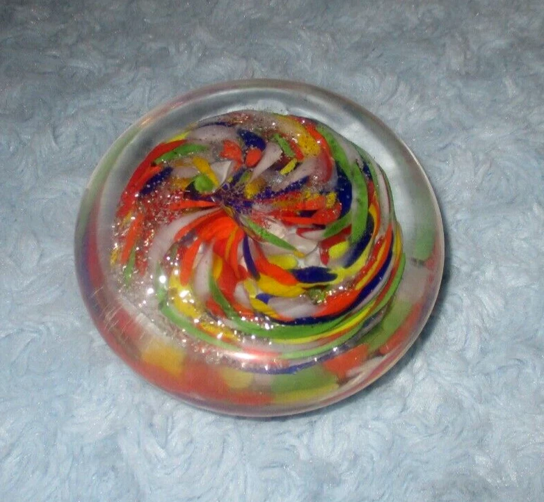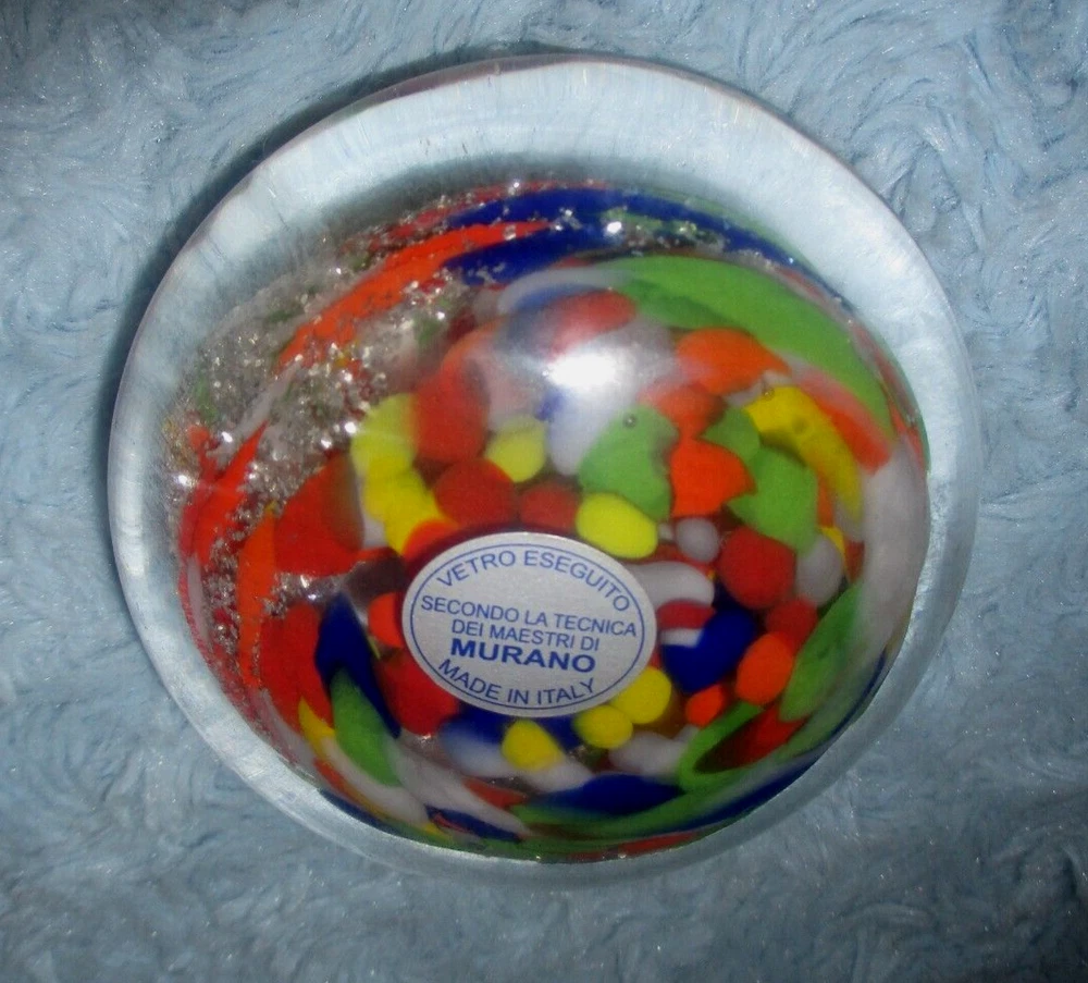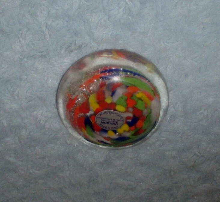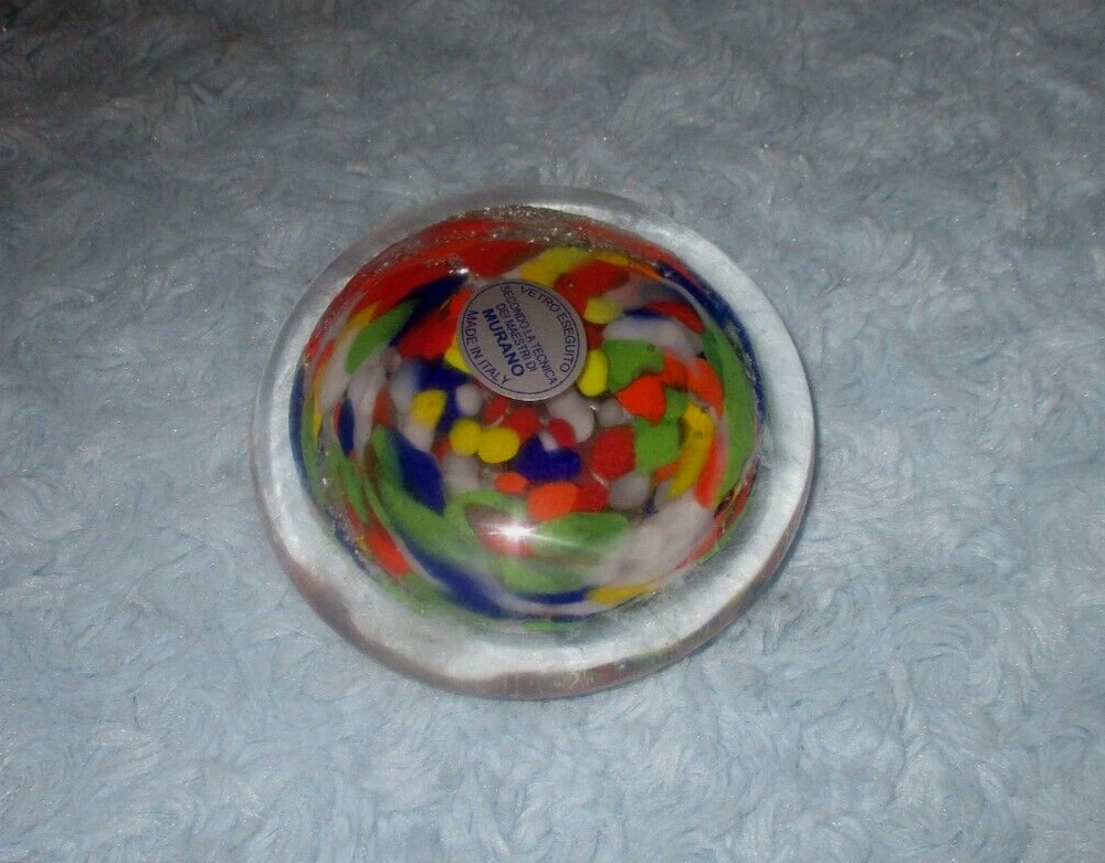 The Murano Vetro Eseguito Multicolor Paperweight, Made in Italy, comes in NEW condition with original Murano sticker... no defects or damage. Please excuse photo flash. Measures approx. 1 1/2" tall by 3 1/2" at widest point. Sorry, I do not take returns for size or color so please email questions. Thank you! Smoke & pet free environment. I always try to combine shipping... please don't hesitate to ask. US shipping reminder: Should an item arrive damaged, please note: IT IS INSURED. Contact immediately with photos, will give options regarding insurance filing. I will gladly file the claim but you must pay to ship the item back. You may file the claim yourself at your local Post Office or online without any cost of return shipping. Filing claims may take up to 6 weeks or longer, depending on the USPS. Outside US shipping may be done by eBay International. If you have any questions, please contact me. Thank you!