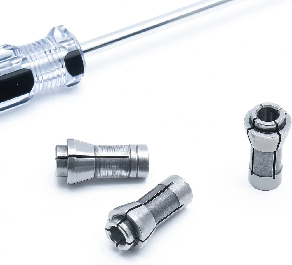 Murtenze 4 Pack Die Grinder Collet, Grinding Machine Clamping Collet Adapter 1/4" and 1/8" Arbors Shanks, 2 Pack 3mm and 2 Pack 6mm Die Grinder Collet. Product Details Capacity: 6 Millimeters Handle Type: keyed Included Components: Chuck Key, Drill Chuck Lock Type: Manual (keyed) Manufacturer: Murtenze Part Number: QZD022 Item Weight: 1.44 ounces Package Dimensions: 2.01 x 1.89 x 0.55 inches Item model number: QZD022 Item Package Quantity: 4 Cutting Diameter: 3 Millimeters Batteries Required?: No Brand: Murtenze Item Diameter: 3 Millimeters Item Weight: 0.04 Kilograms Compatible Devices: Grinding Machine Thread Size: 1/4-20 UNC or 1/8-20 UNC Package & Size - 2 packs of 3mm die grinder collet, 2 packs of 6mm die grinder collet. Suitable for 1/8" and 1/4" standard grinding bits. Use collet chucks to add versatility to mold grinders, routers, and other tools Durable Material - The die grinder collet is made of high-carbon steel, with stable and practical performance, not easy to deform, and can be used for a long time Design - The chuck has 4 jaws to provide better contact and stronger grip. Clamp the engraving machine firmly to improve work efficiency. Application - Suitable for clamping grinding heads of various grinders, very suitable for tire repair and grinding. Compatible with most rotating tools used in hardware, hobby, home, etc.