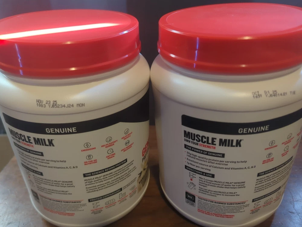 LOT OF 2! Muscle Milk Genuine Protein Powder, Vanilla, 32g Protein, 1.9lb, 30.9oz. Expiration October 2025 November 2025