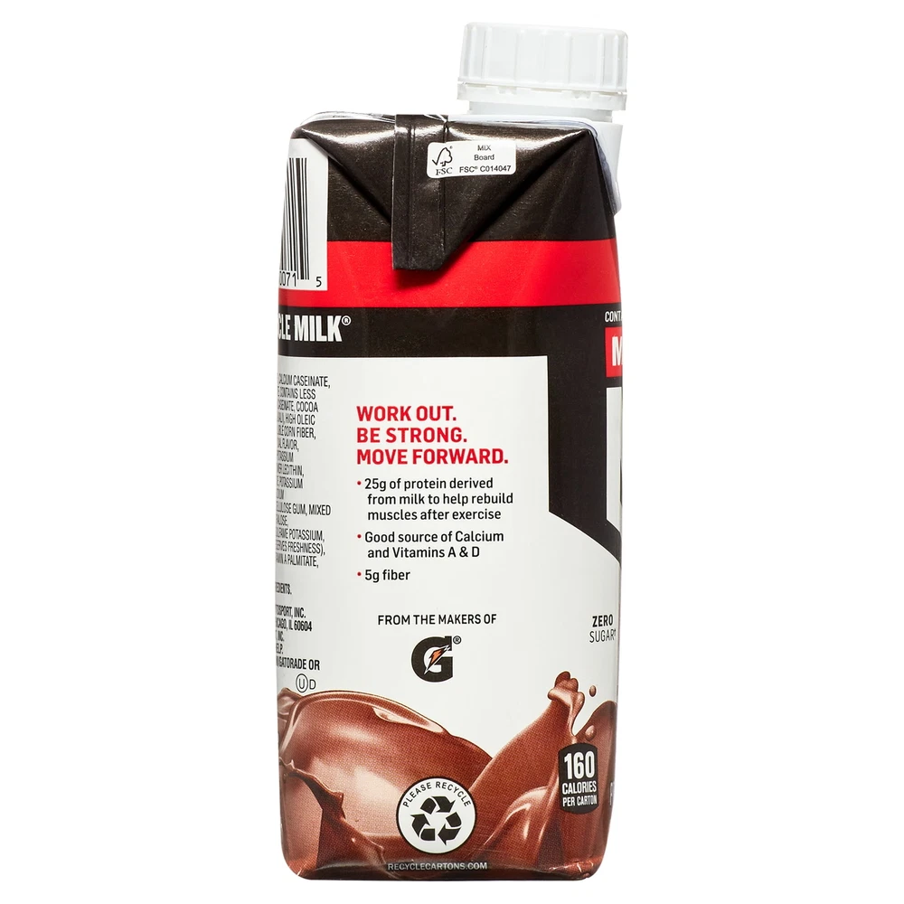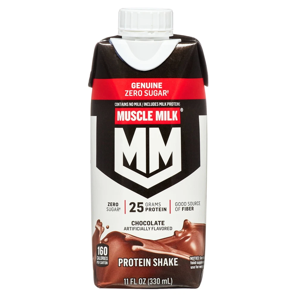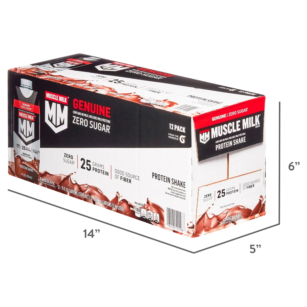 eBay Product details Muscle Milk Genuine Zero Sugar Protein Shake, Chocolate, 11 fl oz Carton, 12 Pack - Muscle Milk Genuine is an energizing protein shake that can be consumed as an on-the-go breakfast or anytime snack or to support post-workout recovery and muscle growth. It contains a combination of slow releasing and fast releasing proteins to help increase amino acid levels. These essential amino acids play a role in muscle growth. Also try adding your protein shake to coffee, smoothies or even oatmeal when you’re looking for a protein boost. Contains twelve (12) of Muscle Milk Genuine Protein Chocolate Shakes. Packaging may vary. HELPS SATISFY HUNGER AND BUILD MUSCLE - Muscle Milk Genuine is an energizing protein shake that can be consumed as an on-the-go breakfast or anytime snack or to support post-workout recovery and muscle growth. KEY FEATURES - Based on 1 shake, Muscle Milk Genuine Protein Shakes contain 25g protein, zero sugar, 5g fiber, and a good source of Calcium and Vitamins A, C & D. GREAT TASTING SHAKE - Muscle Milk Genuine Ready to Drink Protein Shakes are smooth and delicious - just read our reviews! They taste great as is or added to coffee, oatmeal, pancakes, smoothies, and other foods when you're looking for a protein boost. SCIENCE BEHIND PROTEIN - Muscle Milk Genuine provides a combination of slow releasing and fast releasing proteins to help increase amino acid levels. These essential amino acids play a role in muscle growth and maintenance of muscle mass.