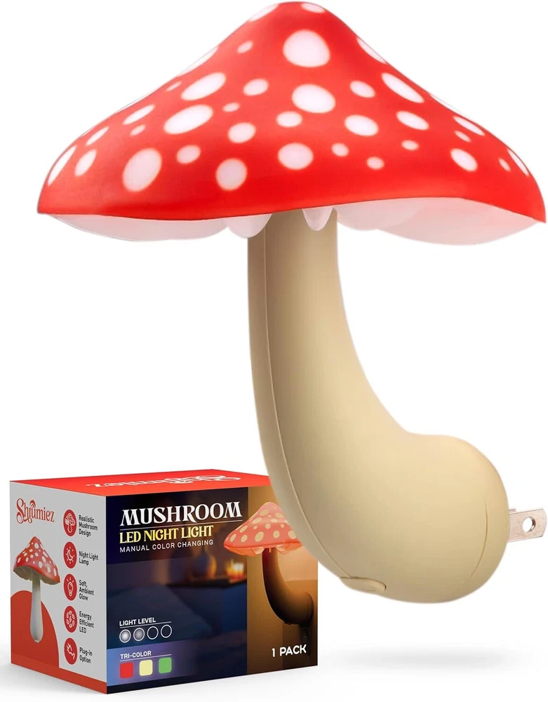 Whimsical Warmth: Light up your life with our led mushroom lamp! This quirky little buddy doesn’t just brighten your space; it brings cozy vibes and giggles, making every corner feel like a delightful hideaway. Playful Decor: Get ready for compliments with the enchanting mushroom lamp aesthetic! It’s like having a tiny piece of nature indoors, perfect for sprucing up your room and sparking joy with its fun, funky flair. Magical Sleep Sanctuary: Turn bedtime into a fairy tale with our enchanting mushroom night light! Its soft, inviting glow transforms any room into a dreamy sanctuary, helping little ones drift off to sleep with comforting warmth and a sprinkle of magic. Adorable Nighttime Companion: Meet your child's new nighttime pal: the cute plug-in night light! This charming little mushroom brings comfort and cheer, making nighttime a breeze and chasing away those pesky shadows with a smile. Enchanting Glow: Bring a sprinkle of magic into your evenings with our night light mushroom! Its whimsical light creates a dreamy ambiance, turning every night into a cozy escape where imagination can roam free and adventures await. Product Description Discover our Mushroom Collection Ideal as Magical light for bedtime Cosplay hat, rave hat Coffee & tea mug Succulent pot, flower pot Home decor Cute wall hook for coat, bags Boho decor counterpiece Material Plastic Faux fur & corduroy Ceramic Ceramic Cotton Resin Ceramic Perfect Gift Idea ✔ ✔ ✔ ✔ ✔ ✔ ✔ Cottagecore/Bohemian Aesthetic ✔ ✔ ✔ ✔ ✔ ✔ ✔ Sustainable Material ✔ ✔ ✔ ✔ ✔ ✔ ✔