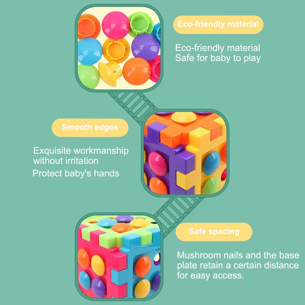 Bullet Points: Suitable for Children: The larger size of each mushroom nail and building board reduces the chance of accidental swallowing, making it ideal for kids under 3. The easy-grip design also enhances usability, catering to small hands Stimulate Children’s Creativity: This toddler puzzle provides a range of assembly methods, allowing children to create unique shapes that challenge and excite them. It enhances the fun of toys while also developing spatial, cognitive, and logical thinking skills Safe for Playing: This toddler puzzle boasts smooth, delicate surfaces and round corners for unparalleled safety and comfort during use. Made from safe materials and with heightened durability, this puzzle provides more, educational entertainment that improves motor skills and cognitive development Strengthen Fine Movement: By aligning and inserting components like mushroom nails into boards, toddler refine hand-eye coordination and fine motor skills, boosting concentration and dexterity Widely Applied: As a family early education tool, this toddler puzzles encourage creativity and imaginative play. Perfect for kindergarten teaching aids or as a present for young children. Develops critical thinking and problem-solving abilities Encourage your child's fine motor skills with this peg board toy. With its smooth and delicate surfaces, children can use their fingers for precise operatings. This toy also provides a variety of assembly methods and reduces the risk of accidental swallowing. Product size: about 15cm/5.91 inches Packing List: 1* Mushroom Peg Puzzle