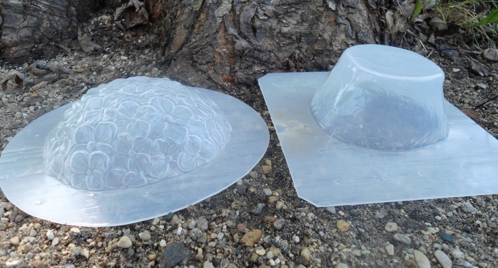 This handmade 2 piece mushroom mold is perfect for creating beautiful shroom sculptures. The mold is made of poly plastic cast and has a total size of 2 & 3/4\"H x 4 & 1/4\"W. The mold is designed for creating flower mushrooms and can be used with plaster, resin, or cement. The brand of this mold is gostatue and it was made in the United States. Get creative with this versatile mold and bring your mushroom sculptures to life!