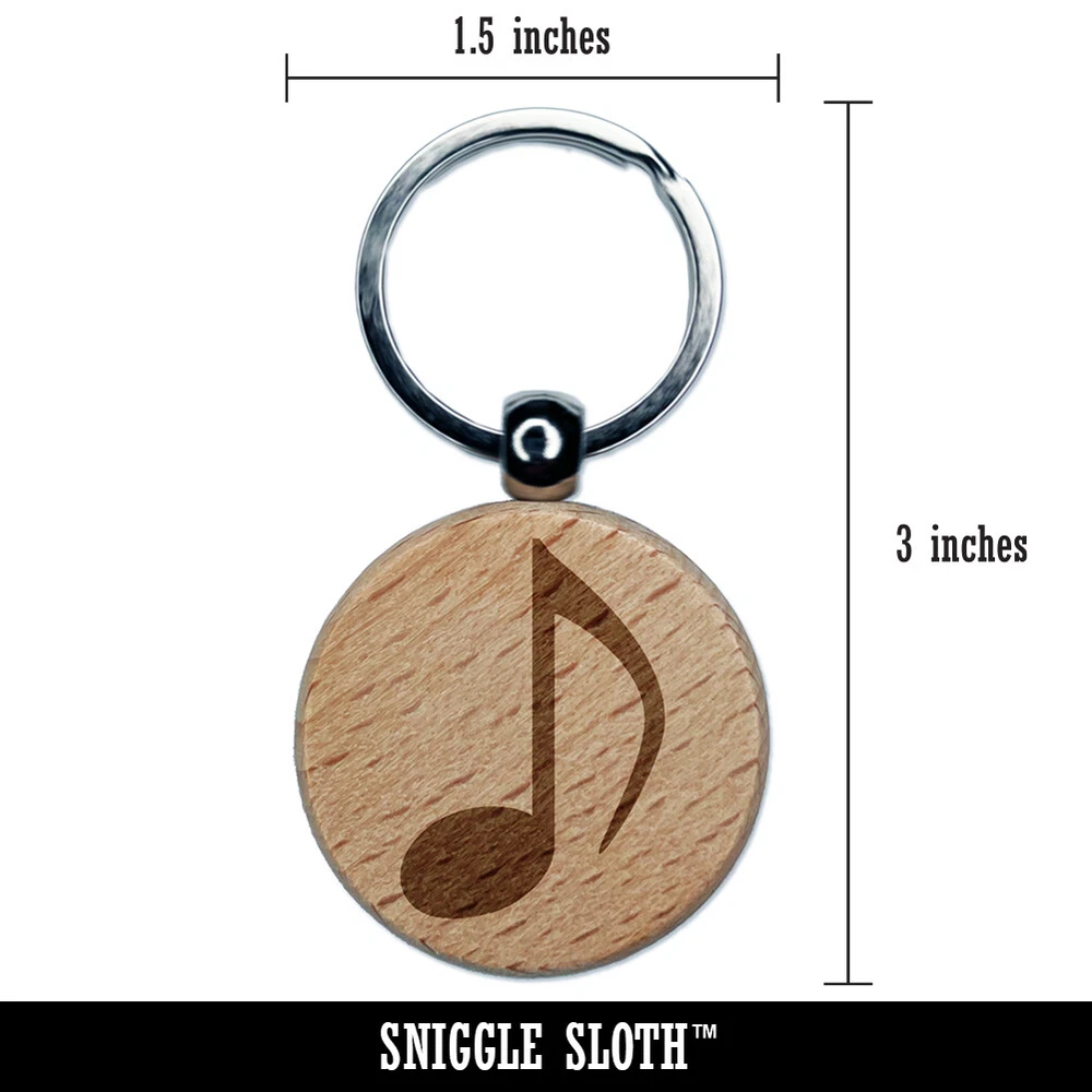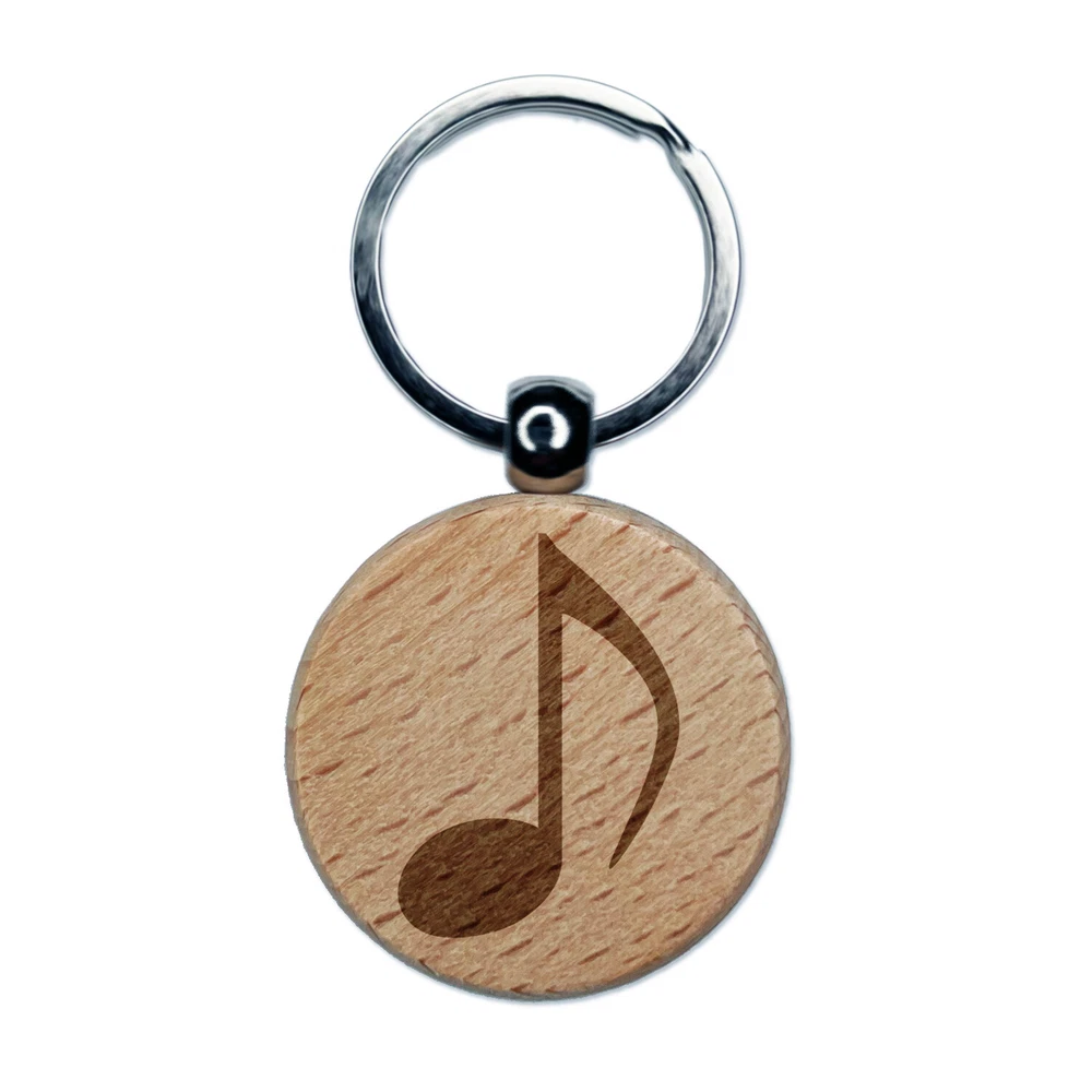 Music Eighth Note Engraved Wood Round Keychain Tag Charm