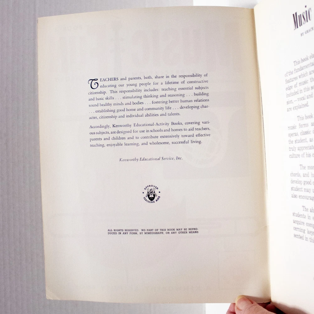 Music Fun Appreciation Theory Book 3 by Marion Kurutz and Grace Reever A Kenworthy Activity Book Softcover/Paperback Illustrated Instructional Music Book 1964 Very Good Condition Author: Marion Kurutz & Grace Reever Publisher: A Kenworthy Activity Book Format: Paperback/Softcover. Illustrated. Release Date: 1964 Dimensions: 10.75 x 8.25 x <0.25 in Weight: 7 oz No. of Pages: 112 Pages Condition: Pre-Owned in Very Good Condition. Some discoloration particularly to the back cover (which is all white), but the book otherwise has no flaws. No writing on the pages within. Book is structurally sound. Please see photographs for details as they are considered part of the description. SYNOPSIS: This book is a valuable addition to any music lover's collection. It covers the topic of music appreciation theory in an engaging and informative manner. With a focus on English language, this paperback book is perfect for anyone interested in music theory. Music Fun Appreciation Theory, Book 3, is a must-have for anyone looking to expand their knowledge of music. **Smoke Free Home**