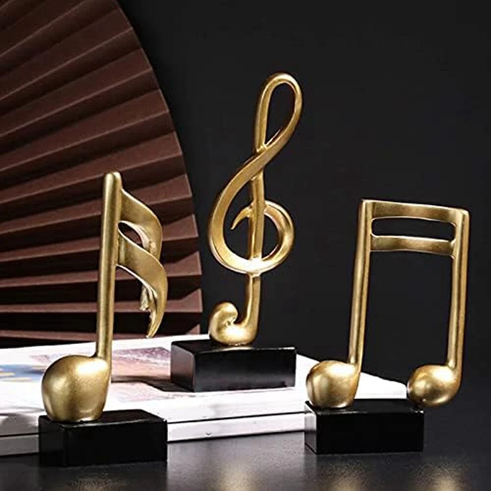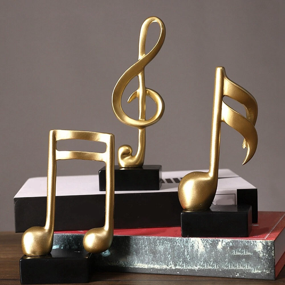 Music Note Decor Musical Sculpture Statue Resin Music Note Figurine for5357 Music Note Design: This musical note sculpture is exquisite craftsmanship, smooth lines and beauty. It is the perfect decoration for your home or office. It can decorate your piano room or study, also suitable for living room or cabinet, decorate your room, like desk, table, bookshelf, dining table, bedside table. Make your home space art . Material of Music Notes: This musical note statue is made of high quality eco-friendly resin, which is and fade . Handcrafted by experienced artisans with excellent craftsmanship, each piece is a . Place it in your home, bring you the enjoyment of art and beauty. Home Decor: Decorate your instrument piano room, put them in your room and decorate your room, like desk, table, bookcase, shelf, dining table, bedside. 3 Pcs: A set of 3pcs, which can mix and match decorations freely, suitable for many occasions, and it is also a good gift choice for friends. Great Gift: Whether it's a birthday, Valentine's Day, Christmas, or any special occasion, the musical note statue is a great gift for family, children, loved , and friends. It brings them good vibes and artistic imagery, perfect as a souvenir of an important occasion. Colour:gold+black Material:Resin Package Contents: 3 x music notes decor