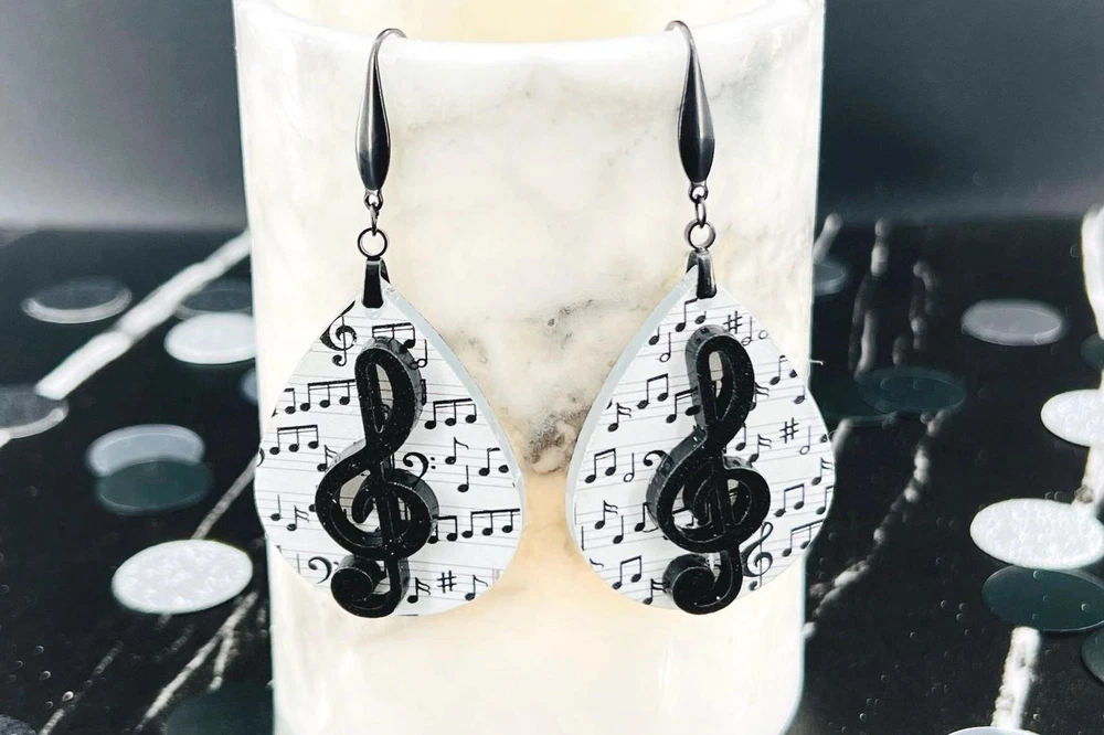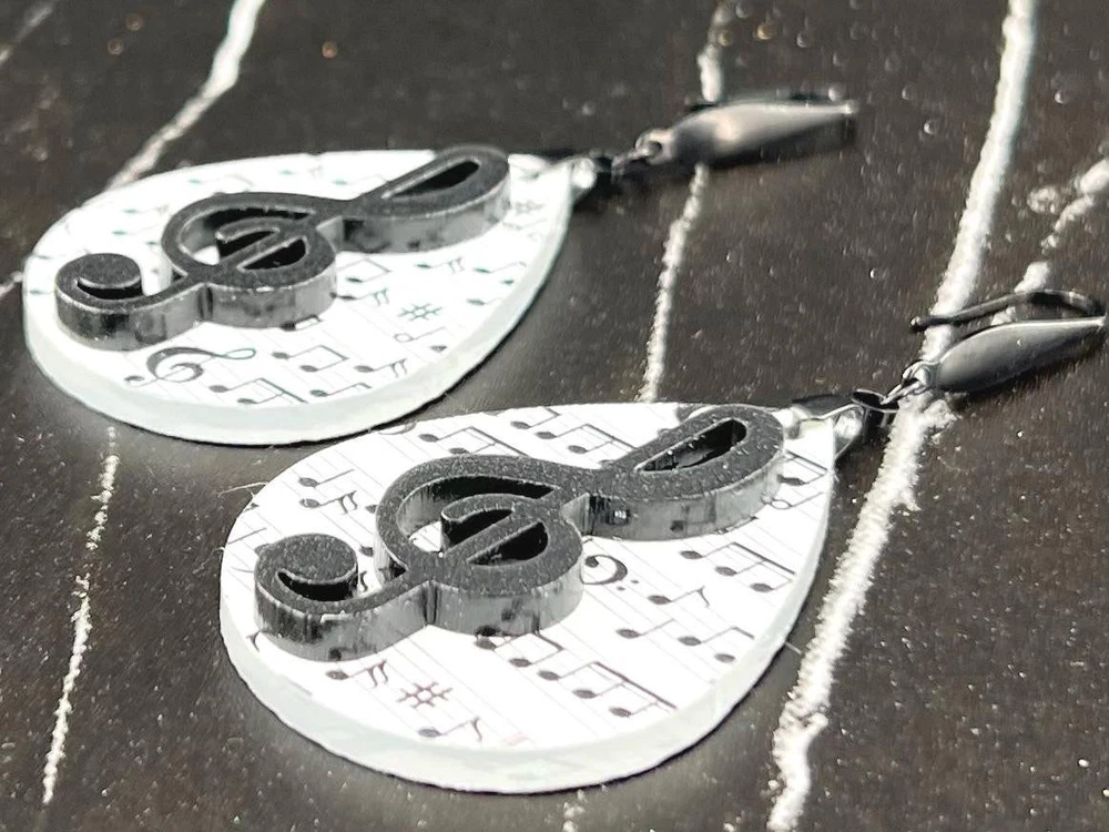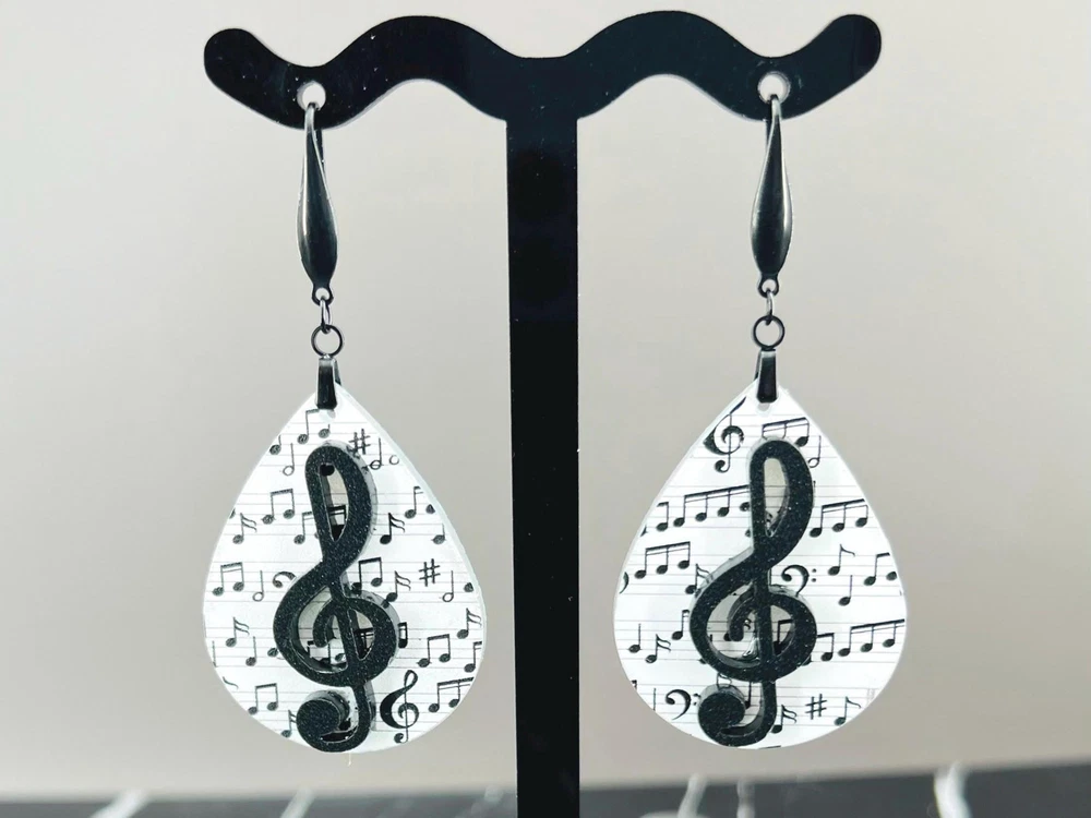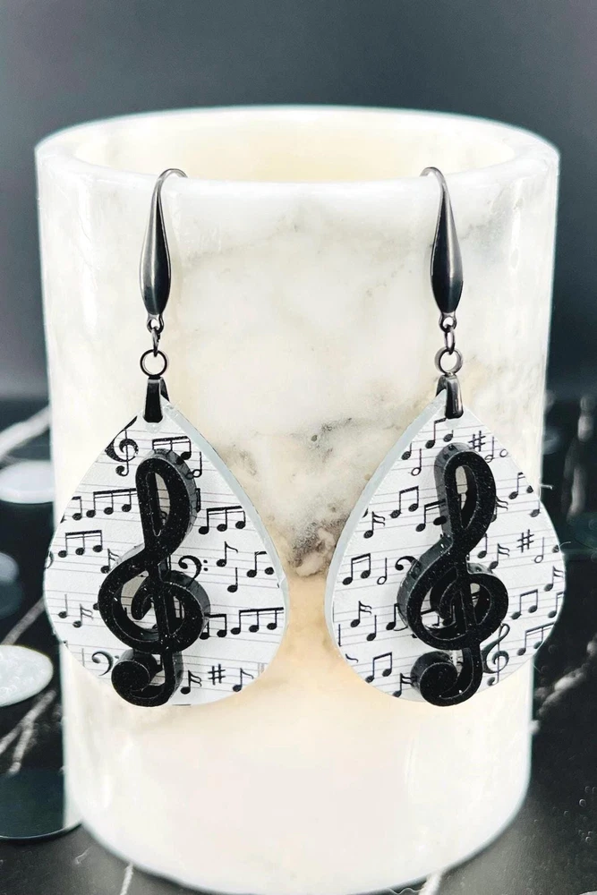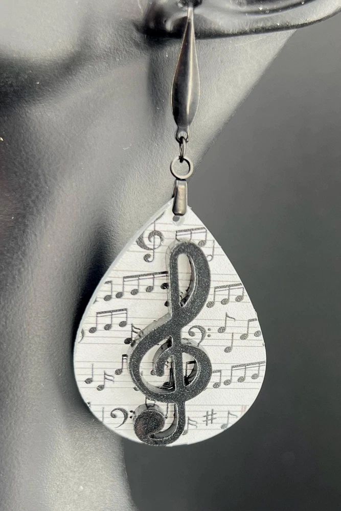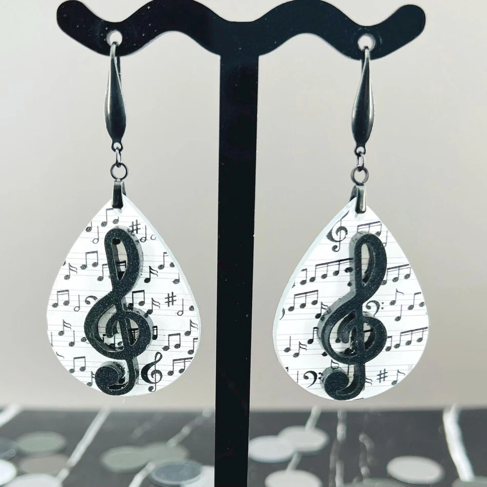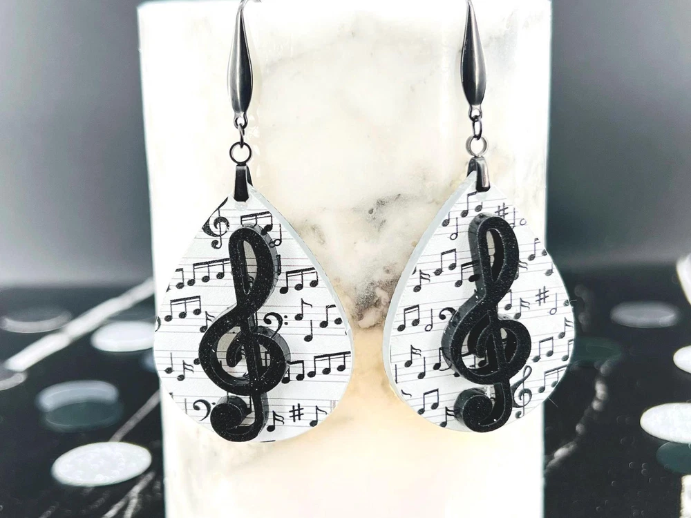 Elevate your style with these stunning Music Note Earrings. Perfect for music lovers, these elegant Treble Clef Earrings make a thoughtful present for musicians or music teachers. Add a touch of melody to your outfit with these unique Music Jewelry pieces. Lightweight Acrylic Earrings on a Stainless Steel hook. Earring hardware is stainless steel and nickel/lead free. 🌟(Please see item details/highlights/pictures for size information)🌟 Each earring is laser cut from acrylic and assembled by hand in our studio. 🌟Due to variation in the patterns and handmade processes, each earring will vary earring to earring. No two earrings will be identical but will look similar to what is pictured! Each pair of earrings comes on an earring card with silicone backers and packaged in an organza bag. Perfect for gift giving! We currently do not offer more gift-wrapping options. Shipping: All purchases are shipped in a box with tracking so that they arrive safely to you! Currently we only ship to US postal addresses. We have a set standard shipping time of 1-3 business days from the time your order is placed. Everything in our shop is already handmade and ready to ship FAST! Please be aware that unexpected delays can occur, which you will be notified at the time of any such occurrence. Jewelry Care: 🌟Each piece is delicate! Avoid dropping or bending! 🌟Do Not expose to excessive moisture, please remove jewelry before showering, swimming, and sleeping. 🌟Avoid abrasives, perfumes, lotions, excessive heat, chemicals etc. These may deteriorate your jewelry and may damage its appearance. 🌟Clean with the soft cloth we have included in your package (and it is FREE of Charge!) No Returns: Due to hygienic and safety reasons, ALL SALES ARE FINAL. We DO NOT accept returns. In the event you have an issue with your purchase, please feel free to message us on Etsy to discuss any possible resolution.
