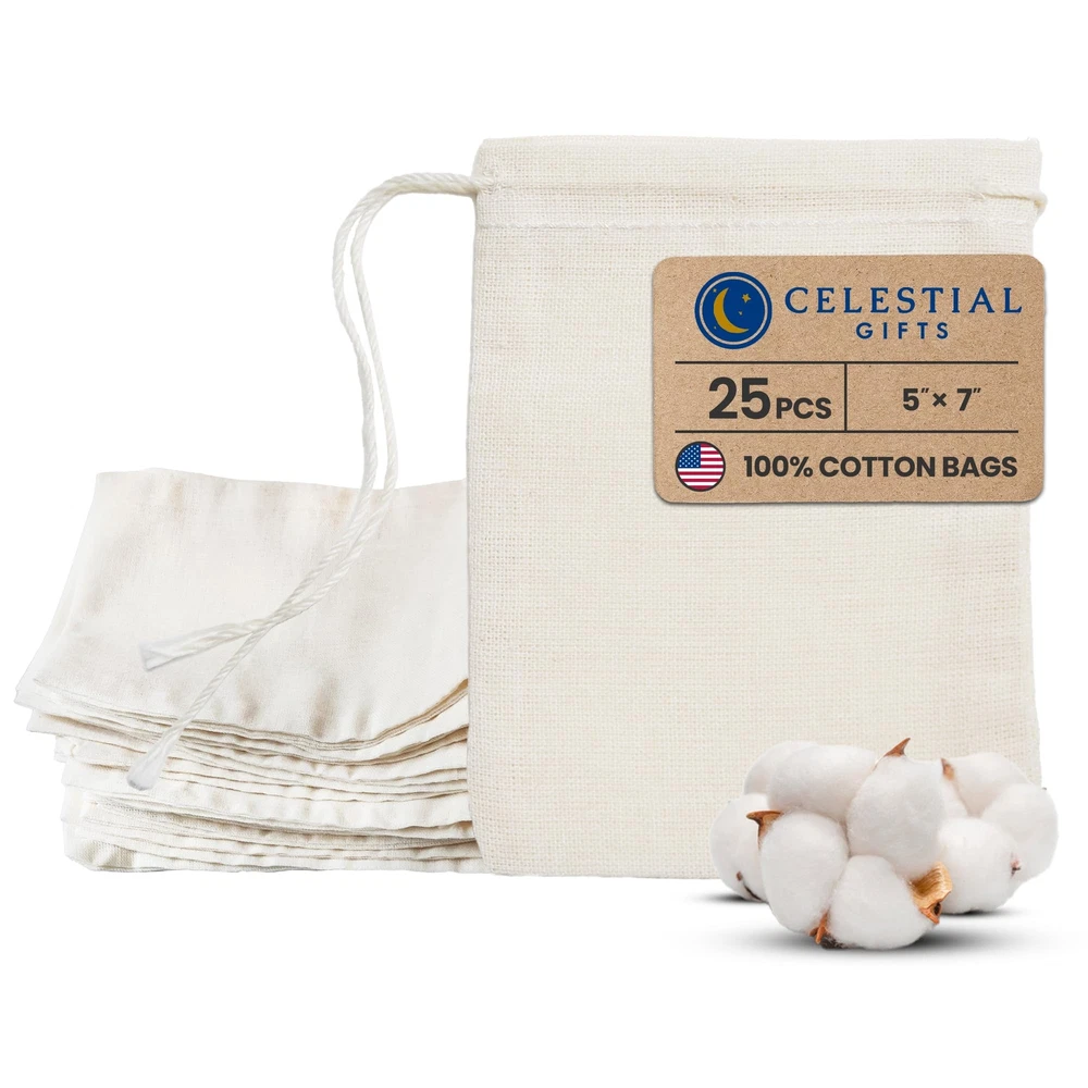 Muslin Bags 25pcs 5x7, 100% Cotton Drawstring Bags for Party Favors and Spice...