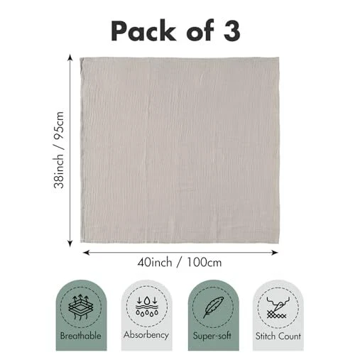 Return Policy Fast Delivery Trusted seller Muslin Swaddle Blankets for Newborn, 3 Pack Breathable Soft Receiving Blanket, Large 38 x 40 inches Swaddle Wrap Burping Clothes, Essentials Infant Shower Items, Toddler Gift (Bright Colors) Product Description SUPER SOFT TO BABY’S SKIN: It is made of safe, natural and pure muslin 100% organic cotton cloth with high-density fabric, which is very suitable for daily baby swaddling. Suitable for sensitive skin, non irritating, free from any harmful substances. MULTI-FUNCTIONAL USES: Baby muslin swaddle blanket can be used in many different ways, support infants and parents as a tummy time blankie, nursing cover up, changing table or stroller cover. The swaddling blanket can be used all around the home or going out as they come in super handy when bathing, feeding, burping, swaddling or cleaning baby. Reusable and very soft, breathable and absorbent. THIN, BREATHABLE & ABSORBENT: Each individual muslin swaddle blanket (38X40 inches) is thin enough to provide ample breathability, which means they can keep your little one warm and cozy in cooler weather, let their skin breathe in warmer weather. It can helps regulate your baby's body temperature and prevents overheating. SET OF UNISEX COLORS: The package includes 3 neutral color swaddle blankets, suitable for baby boys or girls. Each piece with specifically classic prints and handpicked unisex colors that will easily match any outfit, suitable for both boys and girls! Our muslin blankets can hand wash or wash by machine with cold water and mild detergent. ESSENTIALS BABY SHOWER GIFT: Each set are well made and neatly packaged. These durable soft muslin swaddle blankets can be a practical and thoughtful gift for baby shower, baby registration, Christmas, home heating or any special gift giving occasion. Shipping Returns Payment Shipping Shipping is FREE to all addresses other than APO/PO boxes in the lower 48 states. All our stock ships from US-based warehouses. Shipped via USPS or UPS (depending on location and package weight) Unless stated otherwise, all orders will ship within 24-72 hours of your payment being processed. Check our feedback to see the great reviews of FAST shipping we offer. Returns Seller does not accept returns Payment We currently accept payment via eBay managed payments only. Once payment is cleared, we will dispatch your shipment within 1-3 business days. Please refer to the "Shipping" tab for more information regarding shipping speed to your destination.