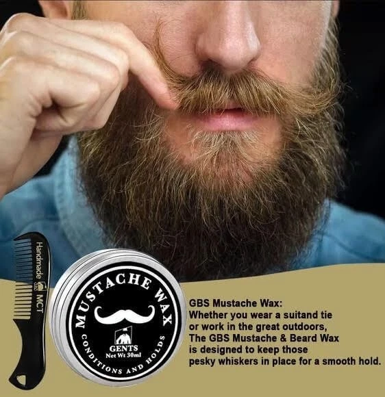 Mustache Wax Extra Strong Hold Fragrance Free 1oz grooming kit comb Scissors Set