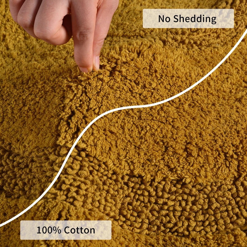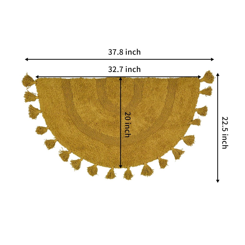 【Cotton Bath Rug】The boho bathroom rug is made of 100% cotton and non-slip bottom pad, semi-circular bohemian style with hand-woven tassels, make this bohemian bath mat look both cute and fun. When you step out of the tub or shower room, keep your feet dry and away from cold floors 【Boho Bath Mat】The boho bathroom rug is shaggy and super soft, made for Long-Lasting Absorbency and Comfort. The plush looks very comfortable. Whether you like bohemian style, simple style, it is your best choice 【Non-slip Bath Mat】Includes 1* bohemian bath mat + 1* non-slip mat. Perfect for gripping all kinds of floors and also help avoid scratches on the floor in daily life. It is strong non-slip, if there are elderly people, children or pregnant women in the home. this non-slip floor mat is the best choice and can be used continuously for a long time 【Bohemian Decor】This bohemian rugs can be used in multiple places at home, It is the best bathroom mat and the floor mat in the family, It is also laundry room mat, kitchen mat. Suitable for bathroom, sink, kitchen, laundry room, living room, bedroom, entrance, etc. Great as a gift for family and friends at Christmas, Mothers Day, Fathers Day, Valentine's, and Wedding 【Easy To Clean】Machine washable in cold water and mild detergent, tumble dry on low temperature, tested for no shedding or fading. The newly upgraded fiber locking technology and reinforced stitched hemming solve the problem of fiber shedding. This like new after cleaning