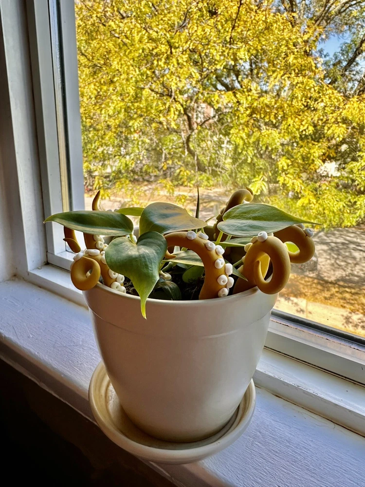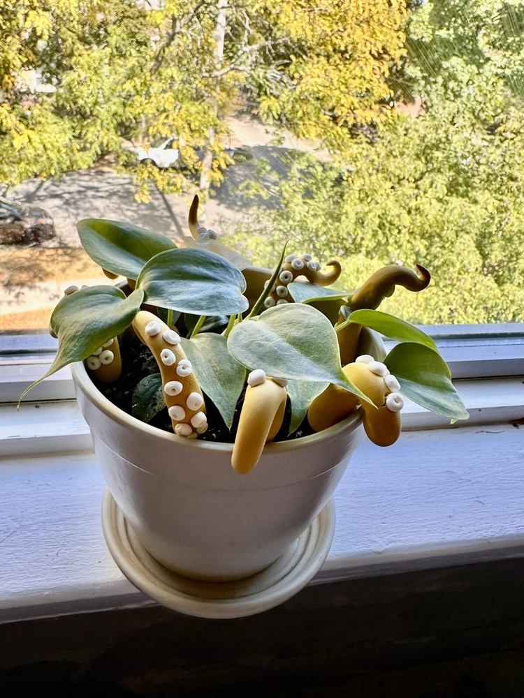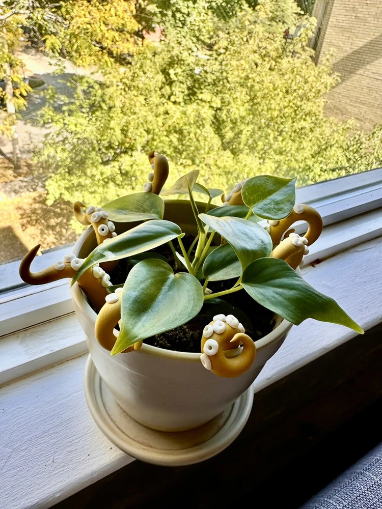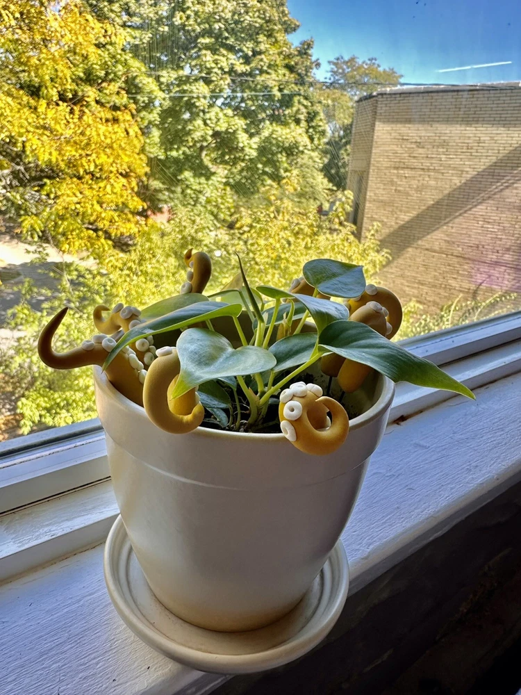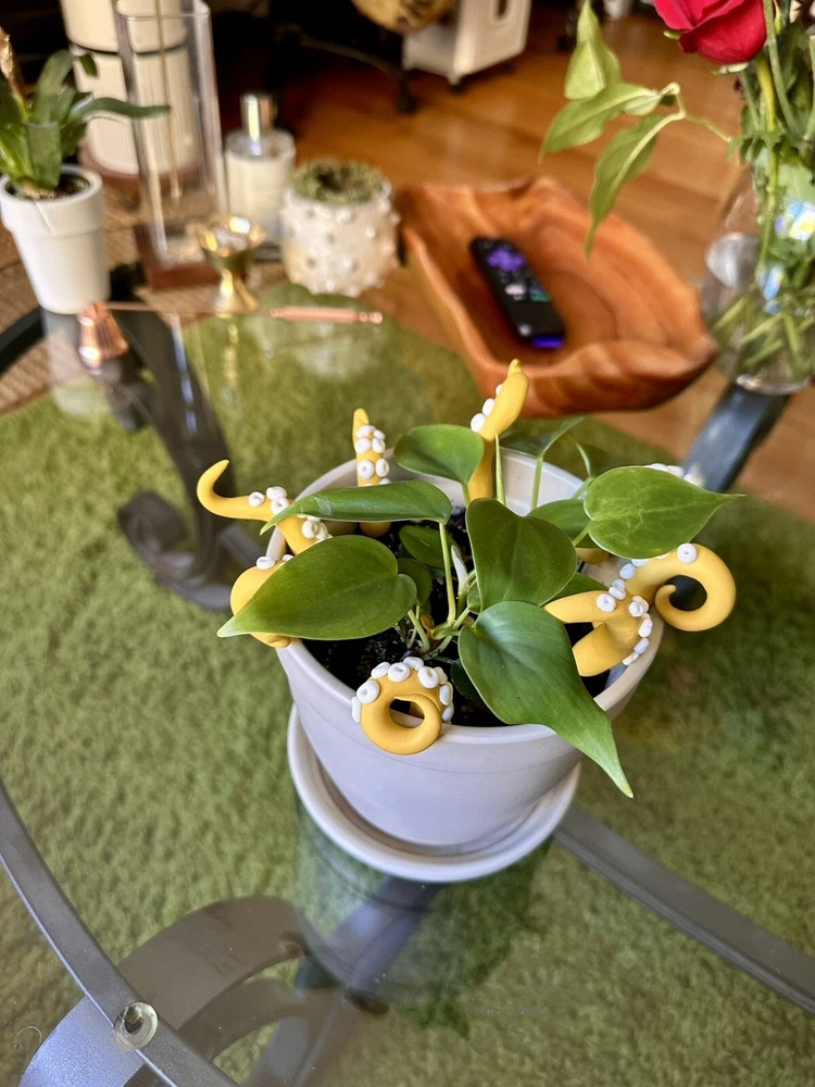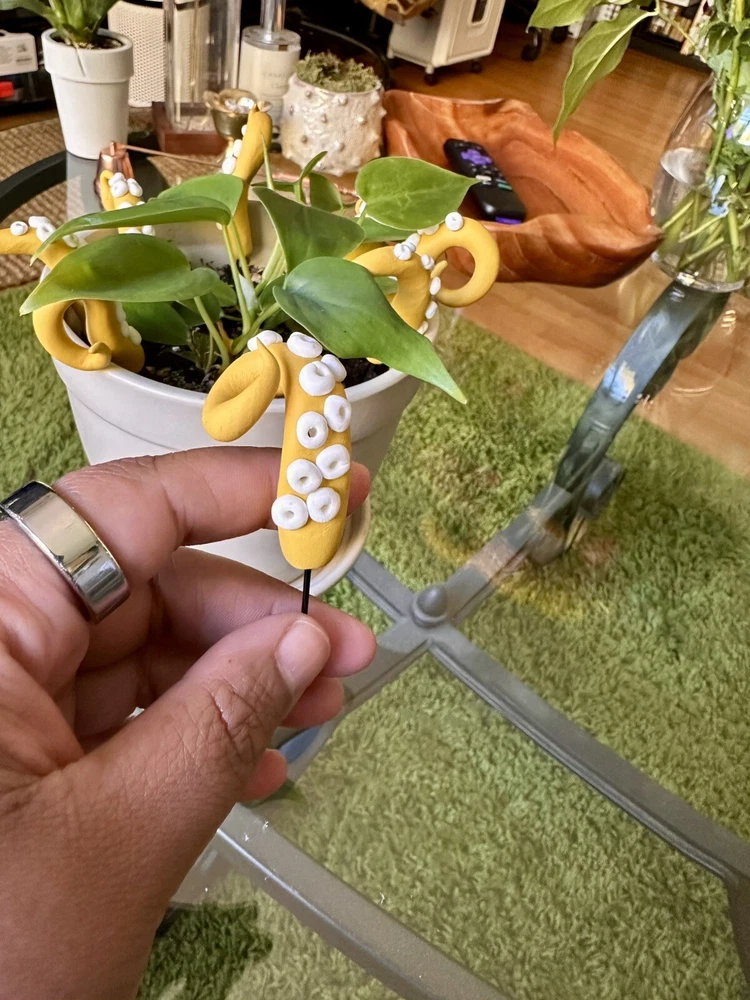 Add a touch of modern style to any room with this handmade lime green sea creature figurine. The intricate design features tentacles and plants, making it a perfect addition to any holiday or seasonal décor. Measuring 6 inches in length, this polymer clay figurine is sure to catch the eye of anyone who enters the room. Whether you're a fan of sea creatures or simply looking for a unique decoration, this figurine is a great choice. This Mustard sea creature figurine is perfect for all occasions and will add a touch of whimsy to any room. It is a great gift for teens, adults, and kids alike, and will be appreciated by anyone who loves unique and handmade decorations. With its modern style and intricate design, this figurine is sure to be a conversation starter. Mustard Sea Creature Tentacles - Halloween Decor - Plant Friend - Fall Plant Decor - Octopus Tentacle - Unique - Modern - Indoor Plant •Product Info Customize your plants with these versatile octopus leg decorations. Use them to create a playful underwater scene, a spooky Halloween display, or a quirky touch to your home-the possibilities are endless! Reminders and Things to Know: # You will obtain eight tentacle legs # Size may vary: 6 Inches Tall & 2 Inches Wide + The base where you will plug the tentacle is made from copper wire + Made in the USA + Plant not included Reminders + These are handmade, and we work hard to ensure & measure as close to the item purchased