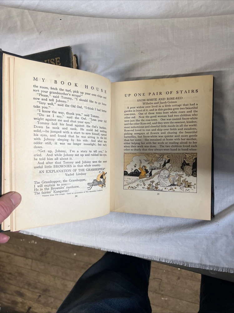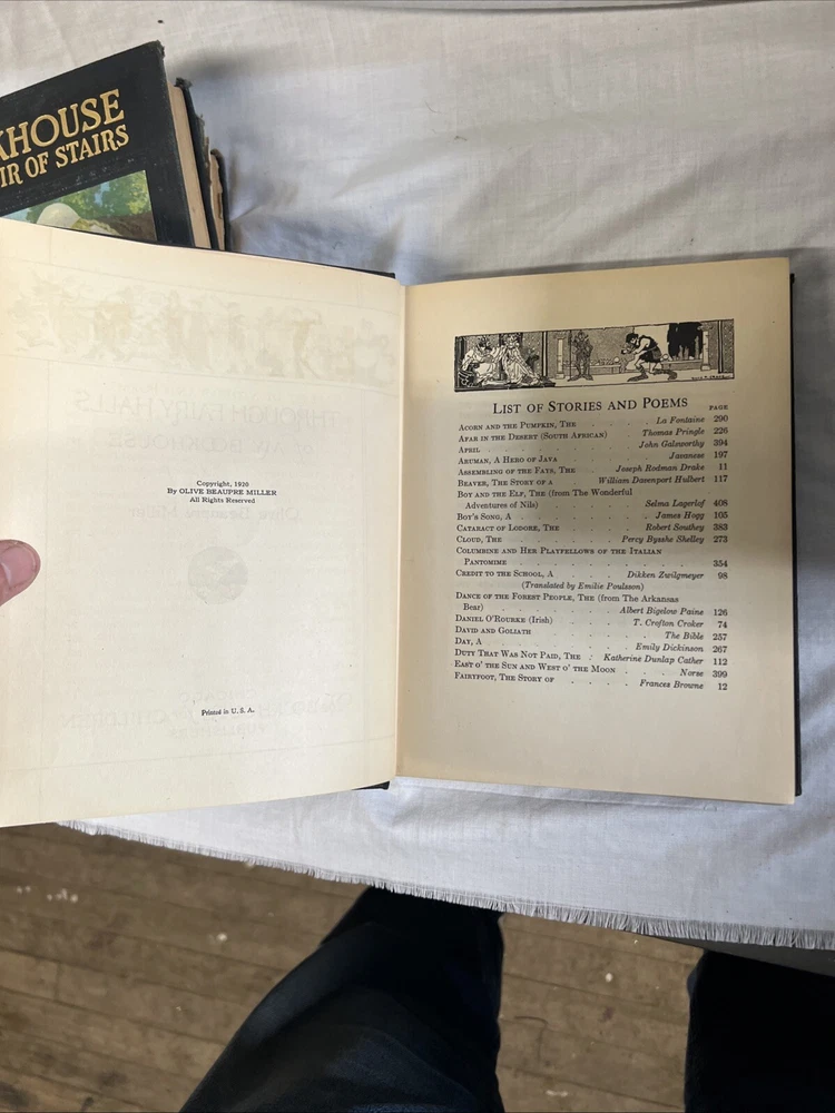 Wonderful complete set of 1st edition My Book House Volumes 1-6 by Olive Beaupre Miller. Published 1920-1921 by The Book House for Children of Chicago, Illinois. The books are in very good antique condition considering the age and the fact that they are children's books, with expected wear to the covers, edges, and spines. The conditions get better as the series goes on with less losses, pages do show foxing/discoloration, page tears from age and turning. Please see all photos. The collection and additional condition includes: (1) In The Nursery . 1920 Break to inner binding, 5-12 are loose, 95, 113, 205 torn and tape, missing pages 13-16. other minor wear (2) Up One Pair of Stairs . 1920, 1925 minor looseness on the outside edge of back cover (3) Through Fairy Halls . 1920 tear on first page (4) The Treasure Chest . 1920 (5) The Tower Window . 1921 (6) The Latch Key. 1921. 1925 See pictures for complete condition details. This item comes from a smokefree home, I accept paypal or you can pay when you pick up an item, any other payment questions please email me. I will combine/discount shipping charges on multiple purchases to help save you money. if you buy multiple items, please wait for me to send you an invoice with the discounted shipping on it. Shipping to Hawaii, Alaska, Puerto Rico, and OTHER COUNTRIES is extra, please email me for international shipping rates, -----------------Insurance is an additional charge, please ask for insurance if you would like it. Insurance needs to be purchased by the customer, in order to have any coverage for shipments lost or damaged by USPS, FedEx, or UPS. I use Fed Ex ground, UPS, and USPS for shipping, please make sure you are able to receive packages via all these carriers. Please make sure to have the address you want this shipped to added as the authorized address on your paypal account. We can only ship to authorized paypal addresses and we do not accept emails to change the shipping address. ----------------- 30 Day money back return policy, if returned due to buyer changed their mind, the buyer will pay for shipping product back and the original shipping. The refund will be processed upon my receipt of the returned item and full purchase price will be refunded. The item must be in the same condition as when purchased. If item needs to be returned due to my error, I will pay for all shipping. any questions... Please Email me before bidding! Thanks for bidding! 46A