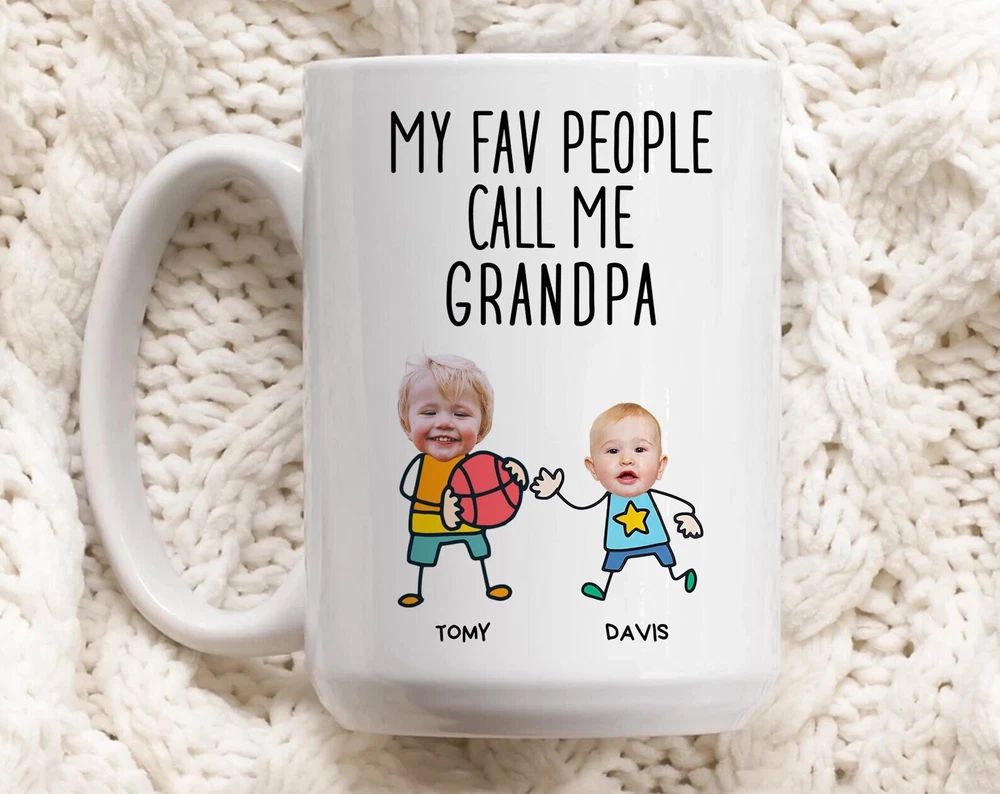 My Fav People Call Me Grandpa Custom Photo Mug Personalized Fathers Day Gift Gift For Grandfather From Grandchildren Gifts For Him Product Details.. This high quality 11oz. ceramic white mug has a premium hard coat that provides crisp and vibrant color reproduction sure to last for years. Perfect for all hot & cold beverages. The highest quality printing possible is used. It will never fade no matter how many times you wash it. Material: 100% Ceramic. Print both sides. Dishwasher and Microwave Safe. High Gloss + Premium White Finish. Printed in the U.S.A. Personalized & Custom. We support personalized and custom mug to add custom, when placing an order, you can add notes to the "order note" in shipping address section. Also you can contact us directly via message. Shipping Info. Ready to ship in 1 to 2 business days, All products are made-to-order and proudly printed in the United States. Shipped by USPS and DHL, You will receive your order in 5-7 days. Replace & Refund. All products are defective during shipping broken, chipped will be replaced free of charge. You are not satisfied with the product, we will refund 100% money to you. If any other issues arise, please do not hesitate to message, we would be more than happy to assist you.