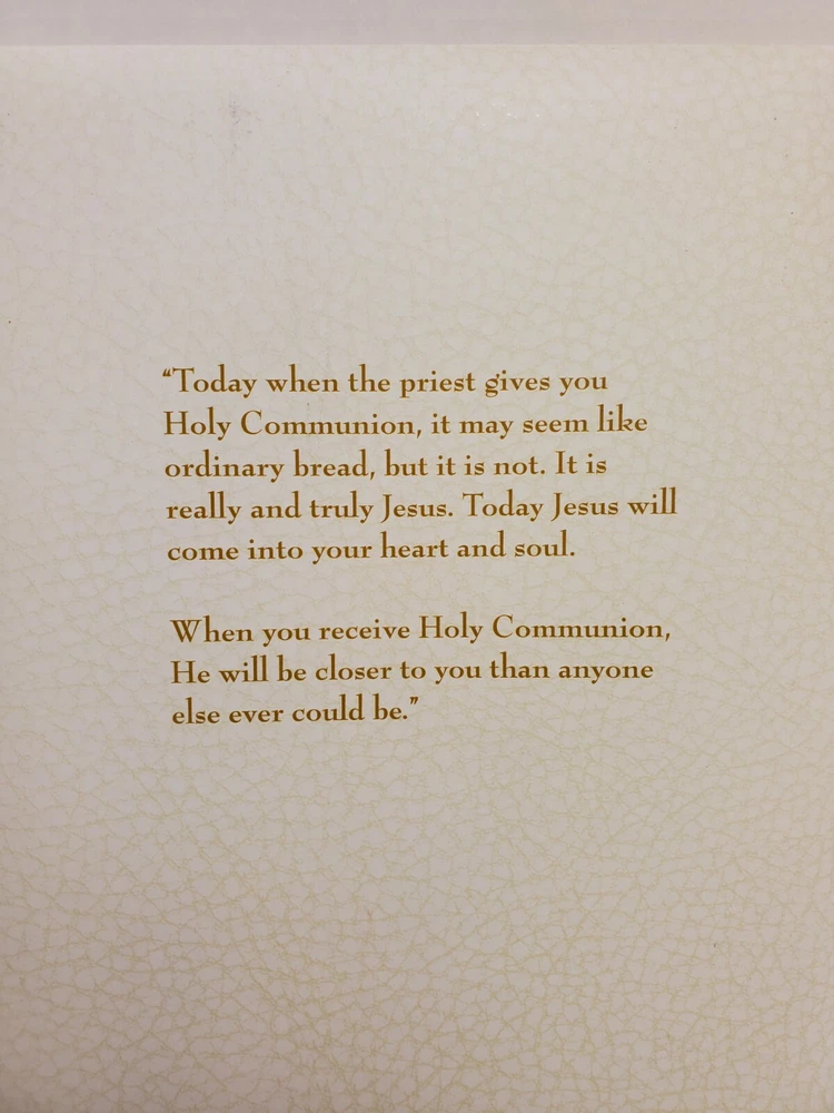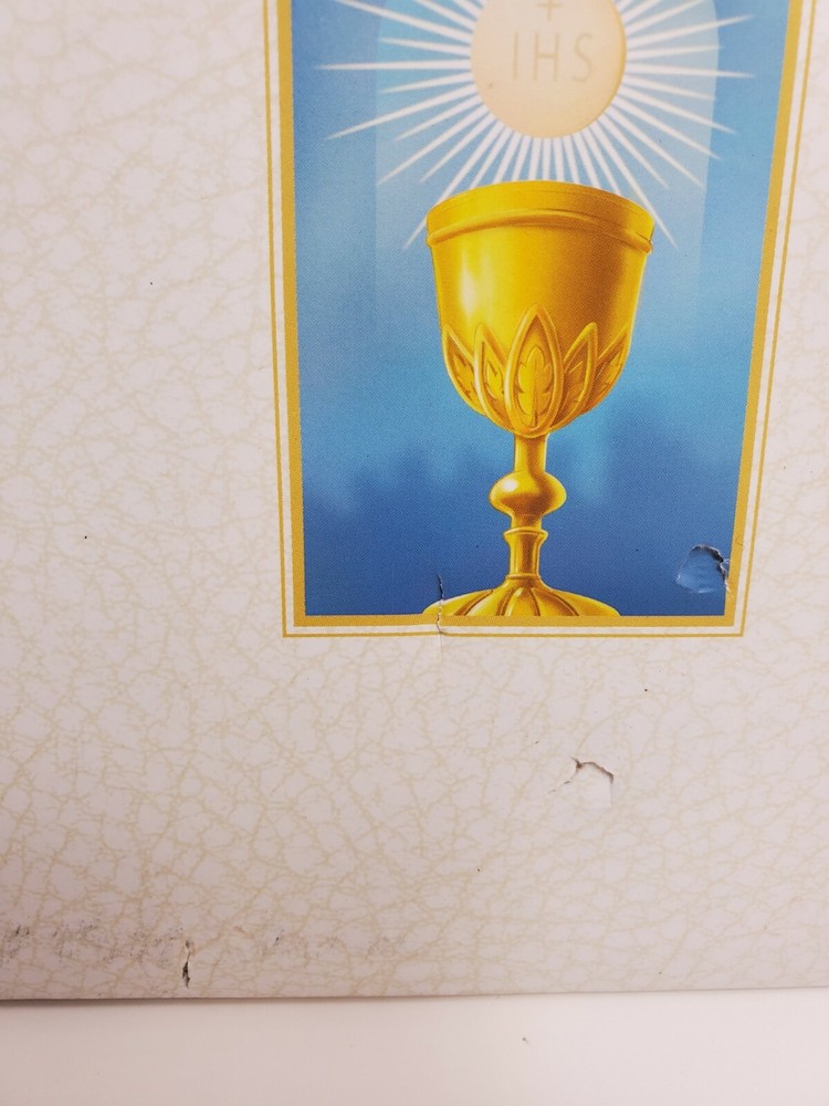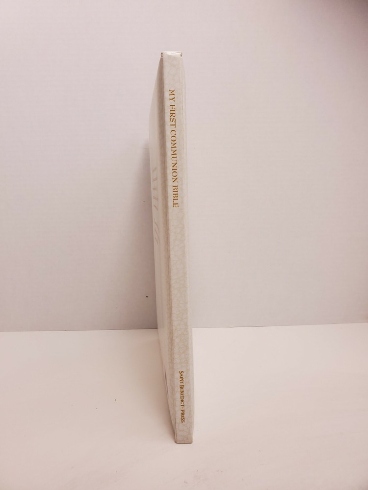 My First Communion Bible (White) - Hardcover By Benedict. This beautiful Bible Story book is specially designed to mark a child's First Holy Communion. Special features include a Communion Record page and a beautiful two page letter from beloved priest Father Benedict Groeschel. There are also 26 bible stories from the New Testament. Condition is "Like New" - it is new but the front has several small punctures, as shown in pictures. Shipped with USPS Media Mail.