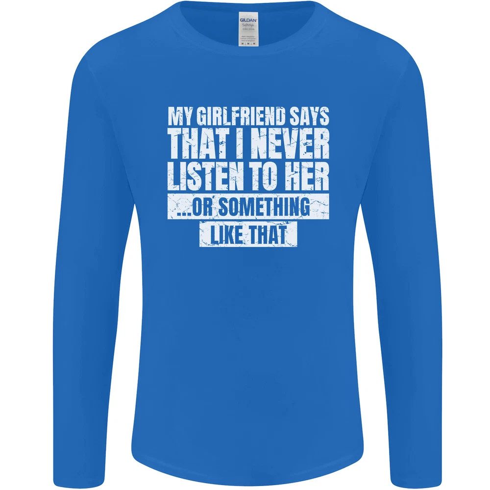 My Girlfriend Says I Never Listen Funny Mens Long Sleeve T-Shirt Sizes: S 34-36" M 38-40" L 42-44" XL 46-48" 2XL 50-52" Professionally printed onto a Gildan Softstyle Adult Long Sleeve T-Shirt Printed with eco-friendly inks that are safe to the skin and children Soft ring spun fabric High stitch density for smoother printing surface 1.6 cm rib collar Taped neck and shoulders Twin-needle sleeve and bottom hems Eurofit side seamed body Grey pearlised tear away label 135 g/sm Training shoe with low-to-the-ground feel. Upper: Welded-TPU support overlays in the heel, toe cap and quarter. Dual mesh provides closed mesh in the lower quarter and breathable mesh throughout. Texture screened toe cap for protection. Description & Size Chart Mens Gildan Adult Long Sleeve T-Shirt Style: 64400 Soft ring spun fabric High stitch density for smoother printing surface 1.6 cm rib collar Taped neck and shoulders Twin-needle sleeve and bottom hems Eurofit side seamed body Grey pearlised tear away label 135 g/m² Printed with eco-friendly ink, which are safe to the skin and children. Alternative Styles This design (where appropriate), and many more like it, are available on the following styles: Best Selling Collections On the Darkside Birthdays Pets \ Animals Gym & Fitness Father's Day Sport Funny Biker Special Occasions Martial Arts LGBT Christmas Shipping All orders are shipped within one working day. Due to circumstances out or our control, or busy times of the year, this could be extended to two working days. Returns Returns are accepted within 60 days of delivery providing that the item is returned in the original condition and all tags are intact (where applicable) and has not been worn. Please ensure that the item is returned clean and free of pet hair. To return an item please use eBay's return system, which can be located by finding your order in your account and selecting the return option. eBay integration by