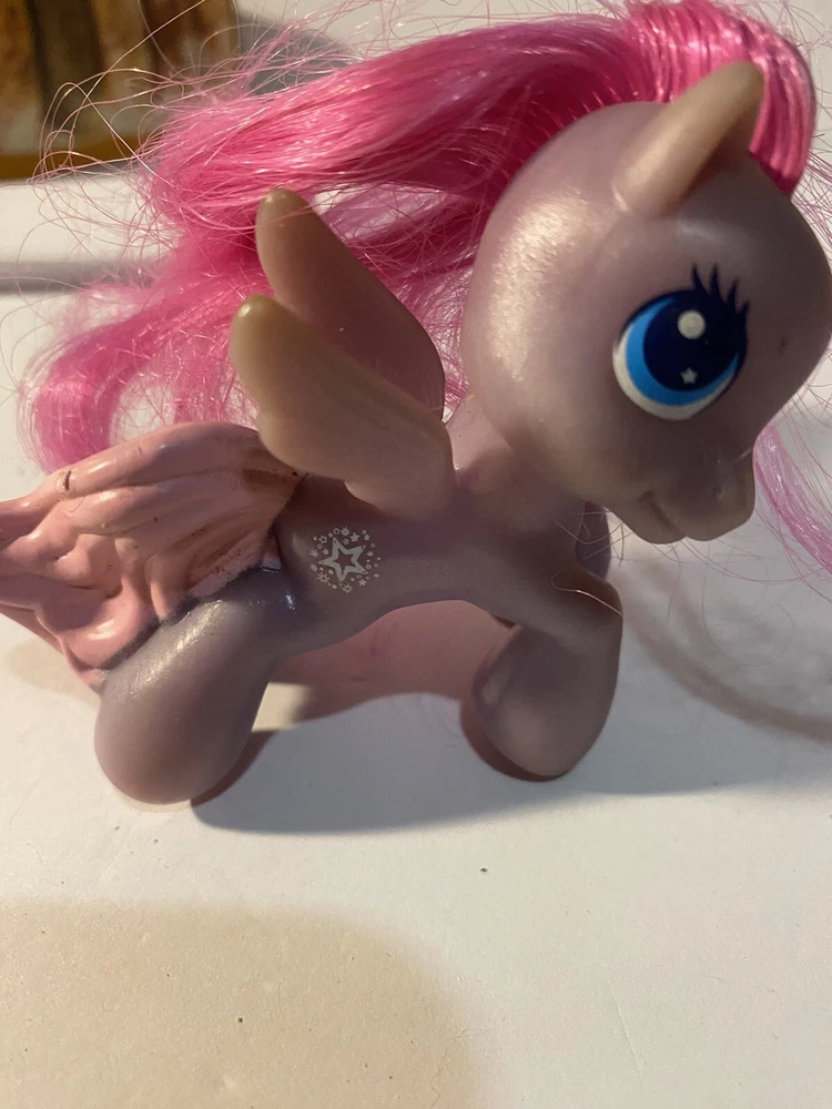 Type: Action Figure Personalize: No Material: Plastic Item Height: 3.5" Year Manufactured: 2009 Age Level: 3-4 Years Brand: Hasbro Customized: No Item Weight: 1.6 oz Time Period Manufactured: 2000-2009 Vintage: Yes Country/Region of Manufacture: China Signed: No Animal Species: Pony Color: Purple Packaging: Without Packaging Series: My Little Pony Year: 2009 Franchise: My Little Pony Original/Licensed Reproduction: Licensed Reproduction Gender: Girls Character Family: My Little Pony