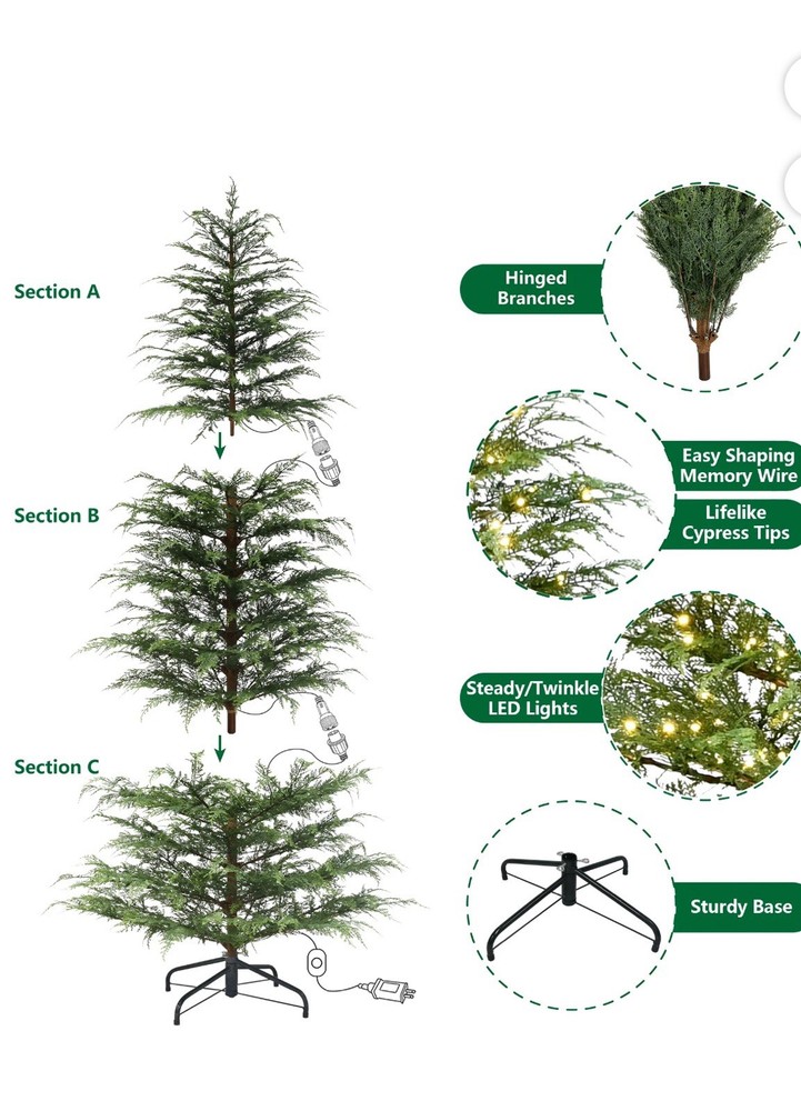 The My Texas House 9ft Cypress Pre-Lit Christmas Tree is a festive addition to your holiday decor. This artificial tree stands at 9 feet tall and is adorned with 600 warm twinkle lights, creating a glowing and inviting atmosphere for the Christmas season. The tree is designed with a seasonal theme in mind, making it a perfect choice for anyone looking to add a touch of sparkle to their home during the holiday season. Made of plastic material in a classic green color, this Christmas tree is sure to bring joy and cheer to your festive celebrations.