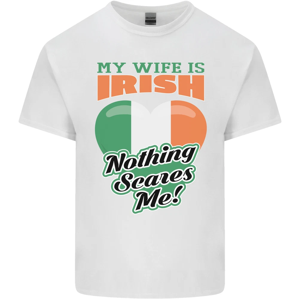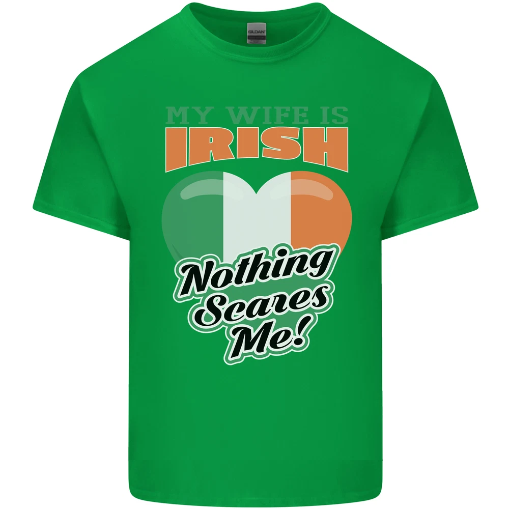 My Wife is Irish Nothing Scares Me Ireland Mens Cotton T-Shirt Tee Top