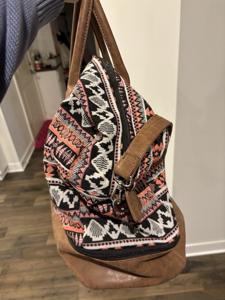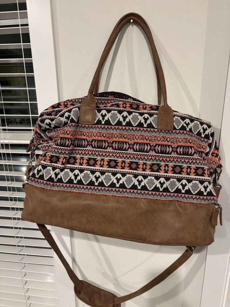 This MyMealivos Canvas Weekender Bag is perfect for overnight travel or weekend getaways. With its Aztec pattern and brown color, it is both stylish and practical. The bag is made of durable canvas material and features a carry-on design, making it easy to transport your essentials. The bag also includes a shoe pouch, allowing you to keep your shoes separate from your other items. It is unisex and suitable for adult travelers. With a size of 20 inches, it is the perfect size for a weekend trip. Get ready to travel in style with this MyMealivos Canvas Weekender Bag.