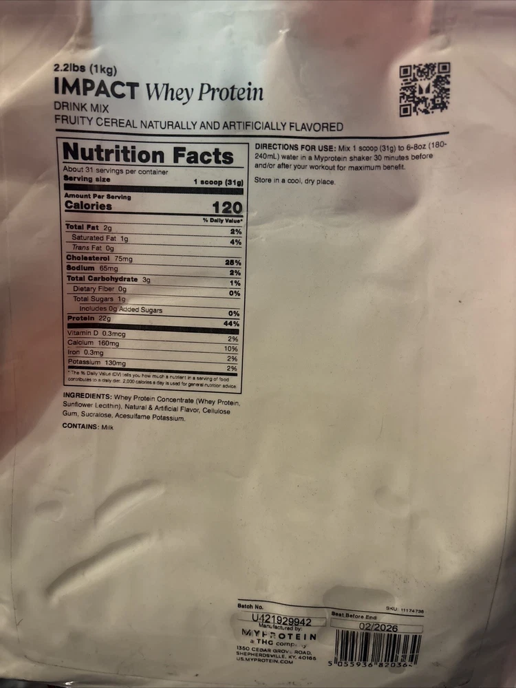 MyProtein Impact Whey Protein Drink Mix 2.2 lbs Fruity Cereal Exp 2/2026.