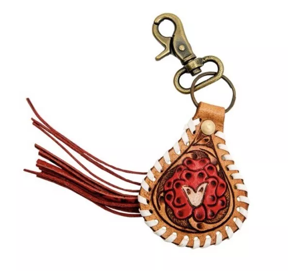 Add some western flair to your keys with this hand-tooled leather key fob from Myra Bag. The multicolor design features a cowboy-inspired theme that's perfect for any fashion-forward woman. Made from high-quality leather, this keyring is durable and long-lasting. It's the perfect accessory for your keys, and it's sure to turn heads wherever you go. Get yours today and add a touch of Myra Bag style to your daily routine. Our yankee key fob is handmade and styled to supplement your fashion. It is a pefect gift for your family, friends or colleagues. Materials LEATHER Item Width 2.75 Length 6