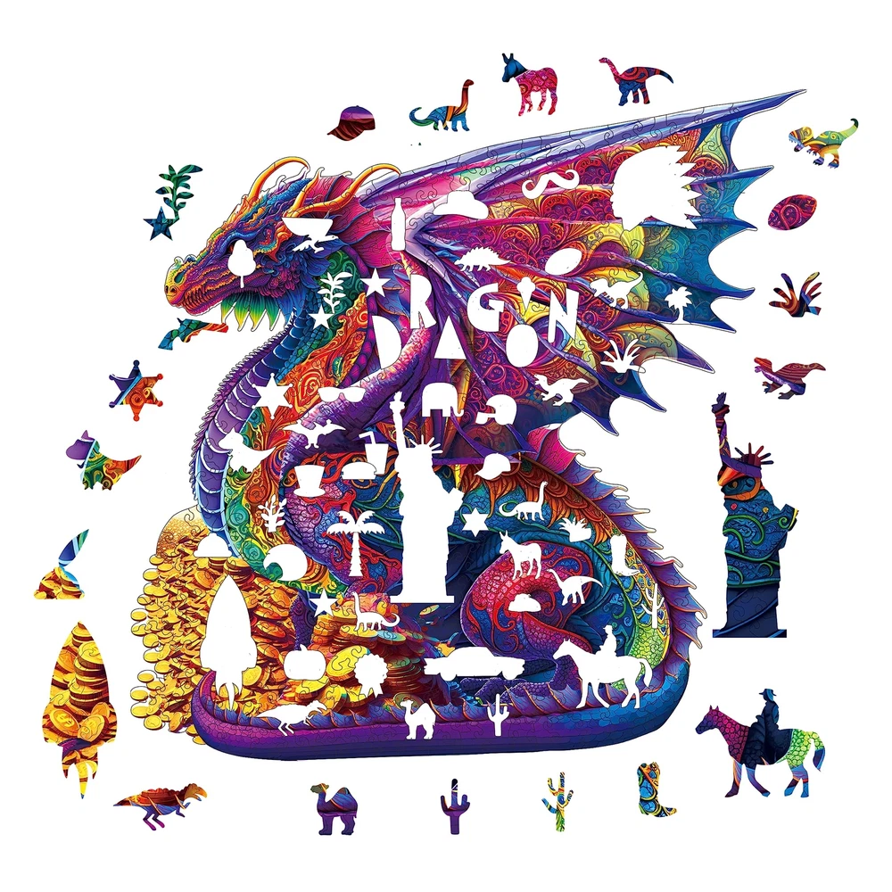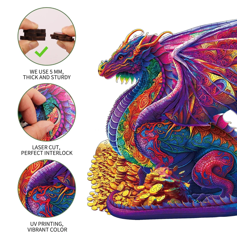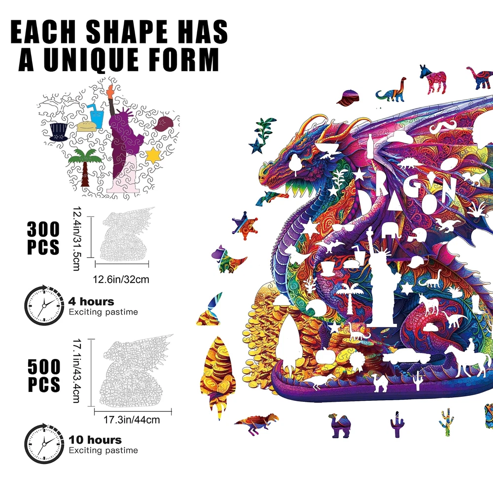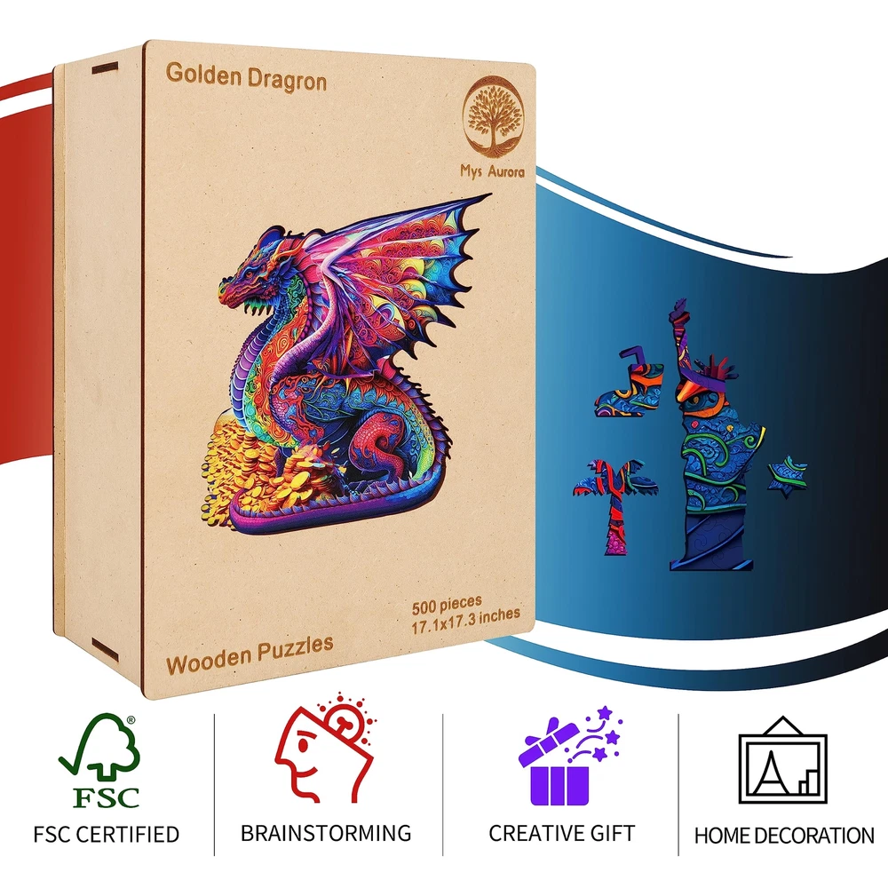 Mys Aurora Unique Wooden Jigsaw Puzzles - Gold Dragon 500 Pcs King Size 17.3'...