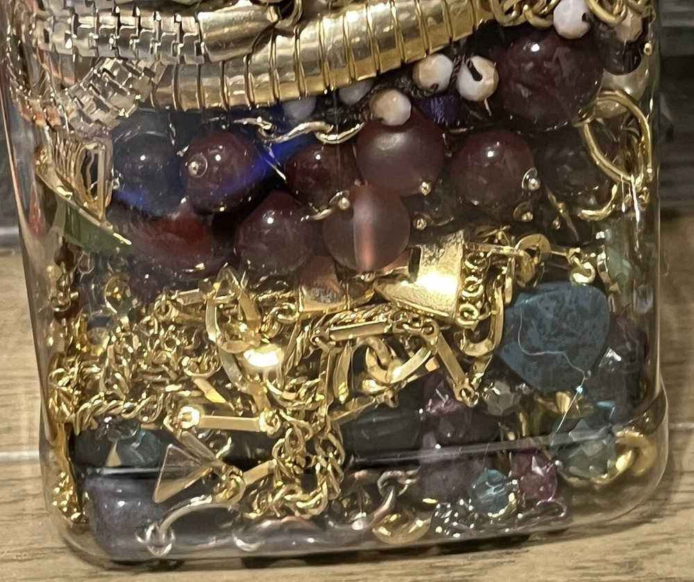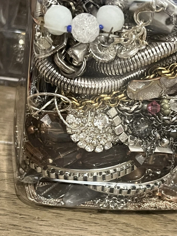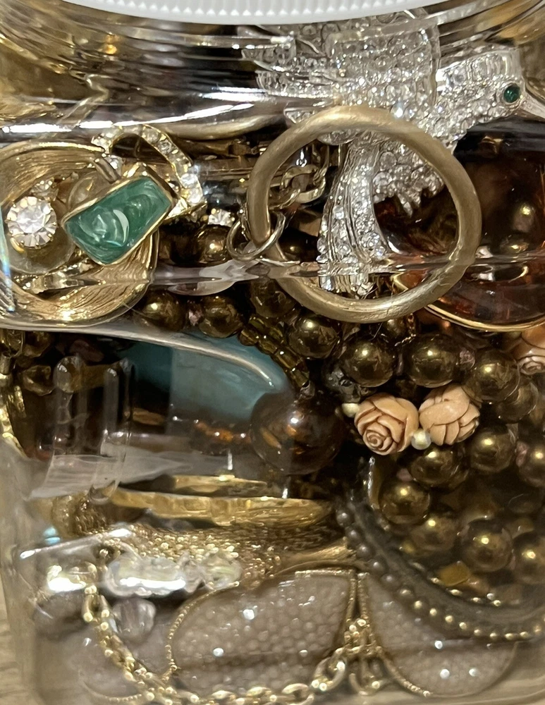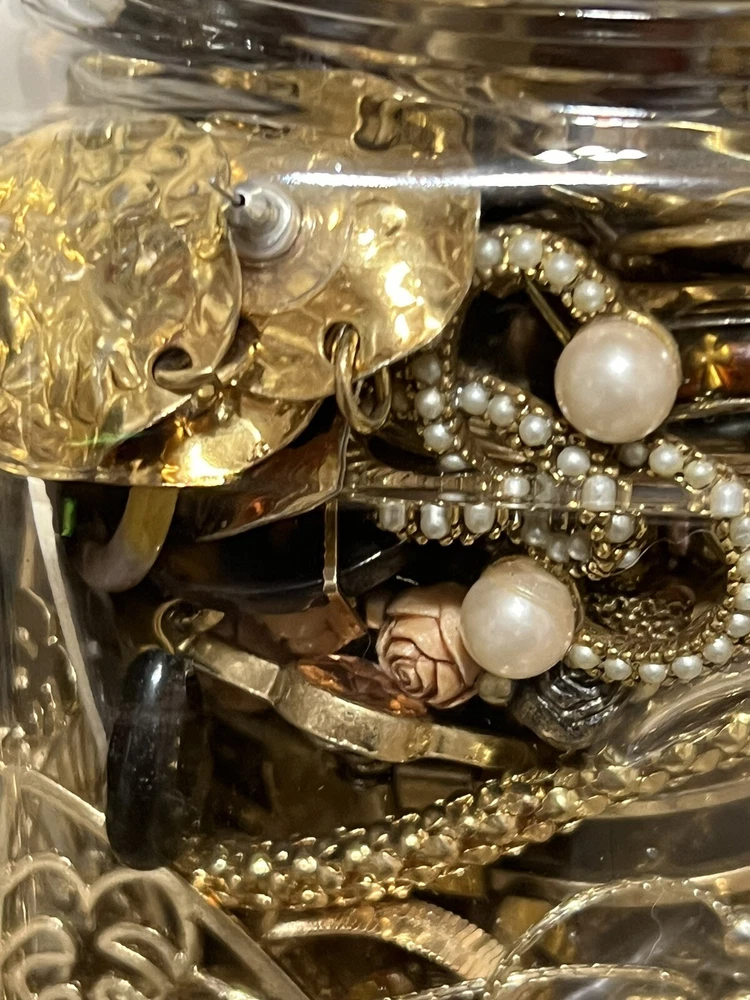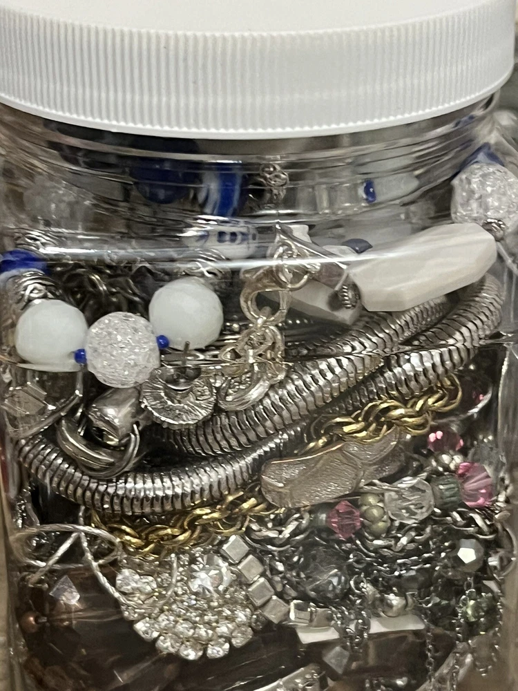 FYI- photos are sample photos. This will be a regular size jar available in clear blue mason jar too! The other listing are all for bigger jars! Takes a lot too fill them! This size may. Become are reg size jar . Just maybe changing presentation soon in jar type and size.! That is why this jar cost less!Typically it’s a jar that was created and. Already sold. So, any photos you have seen are jars that have been made for that customer one at a time and a lil personalized for you . I will message you after you purchase any of my jars. They are selling fast. Most pieces are basically the only one I have that identical especially vintage. I have a lot of vintage. More present day pieces that you may see in a photo I could have something similar.please be patient there always seems to be a wait. They take time, I work very hard to create . You can make one simple customization but it can’t be all silver or gold rem it’s a treasure hunt and a mystery jar. Curated jars are on another listing , they do take a good bit of time. The listing for that are only on the bigger jar but I will put a listing for a smaller curated jar up. You can always let me kno if it’s not up and I will create the listing.Rem the sooner you put your order in even if you see my time away is on it’s still better to get yourself in line lol no pressure tho. Just want you to be aware there is a delay on shipping due to the increase in orders. First come first serve I sell off two apps for these jars and jewelry has been clearing out but I have more vintage that I’m looking thru now. I truly appreciate everyone that has purchased from me especially since I’m new to selling on eBay., offers are welcome plz consider the fees for using their services bc you will receive jewelry in much more then the value im making. I kinda over do it some. Rem it’s a treasure hunt with no TRASH ALL WEARABLE. You will receive exactly what I stated vintage to now all wearable good condition. Some items may show wear that maybe vintage and if I think that it takes away from the piece I won’t add it but rem diamonds in the rough phrase. Below it overly explains. I’m editting and making another listing dif photos! Ty! This is a plastic square like jar type canister packed full all the way too typically the rim where sometimes I have to press down On the lid before it twist! No worries, I know better than to damage any jewelry. The canister w/ lid I’m finding it’s been A nice way to travel and keepPieces safe. It’s also reusable. I buy each case from Amazon some a lil dif shape then others . A few ounces smaller. This will be for a lil less of a price. Shorter and more squared and still wide rather….To me it’s for presentation and people love jewelry jars just as much as a mystery box made to be like a jewelry jar. I offer that too. Still all In presentation is super cute for gifts and the box you can message me on how many pieces bc you may need a few for gifts and then you can customize. They are very nice boxes I haven’t explained in detail on my listings but I have some for a five piece up to a 40 piece more then likely. They look wrapped and ofcourse I package them up to mail I don’t mail them like that. This canister is packed. I was trying to stay around a lil over a pound but for some reason I have made them over two and three pounds. These are mixed with vintage to now. Signed and unsigned pieces. I try to give everyone a variety . Each time a jar order comes thru I prepare in order they come. So, my sole focus is on your jar when I make yours granted depending how many are ahead it can take up To three days to purchase. If you have small preferences or request I can try to honor As long as it’s fair to everyone. I’m All about kindness and fairness And honesty and that goes quite far in my book bc we need more of that. It will be mixed materials plz don’t Buy this jar for good then be highly disappointed there isn’t any. All times you maybe get plated or filled or you could get lucky but this is a lot of costume, vintage, current, fashion, designer. Signed unsigned pieces. Boutique pieces just an array of jewelry. Sometimes I do run on particular kinds of vintage and I do have my own personal stash I will use to sell on ruby lane but honestly im down sizing tho I keep buying some amazing jewelry. Its all quite beautiful Even the ones w flaws I take out for crafts tho I have a massive load of harvest craft so by all means message me n get a great price n I can crate the listing. It started w my great grandmothers and then it almost became like a dream I loved it. I love the learning, the history is by far very interesting. Anyway I hope that I can finally down size enough to where I know where each type is at bc I do let go of some special Pieces bc im Not researching what I’m Putting in your jars ik having To just let go. It’s very hard for me bc a lot of it I want to sell but I can’t. There isn’t enough time in The next few years. I’m Not saying everything is collectible but to have a load of vintage and pretty decent just costume jewelry that I hold on too bc I knew per piece it will eventually sell plus on my other platform each purchase comes with a gift. Now I’m doing lots n Jars in both so they are going well but jars will phase out or down size bc if you continued buying them you would see just how many dif pieces I can put in there one week it maybe one way but I’m getting so mixed up just trying to get it ready bc I’m Really trying to give you a good mix. I Honestly enjoy it so much that it doesn’t bother me to lose money but I also have to think about if I want to continue and be able to give you the mix and exactly what I say vintage to now signed and unsigned. Plus not researching anything I kno is hurting bc I’ve dug into my newer stock Of vintage and I just know that I’m paying more per piece on a lot of it but so many pieces I’ve just gotten thru the years or r
