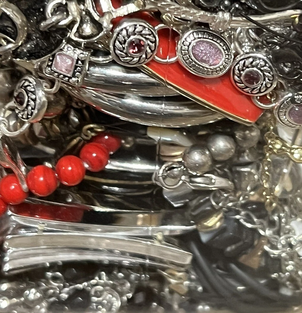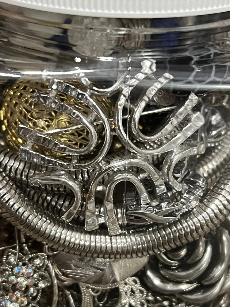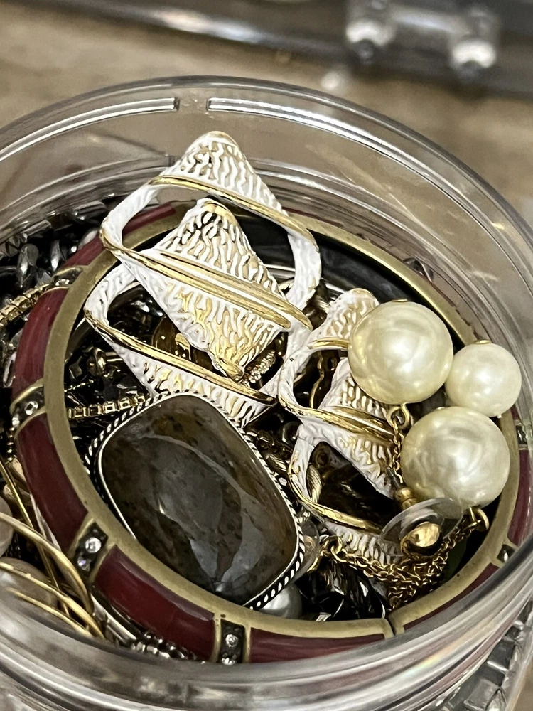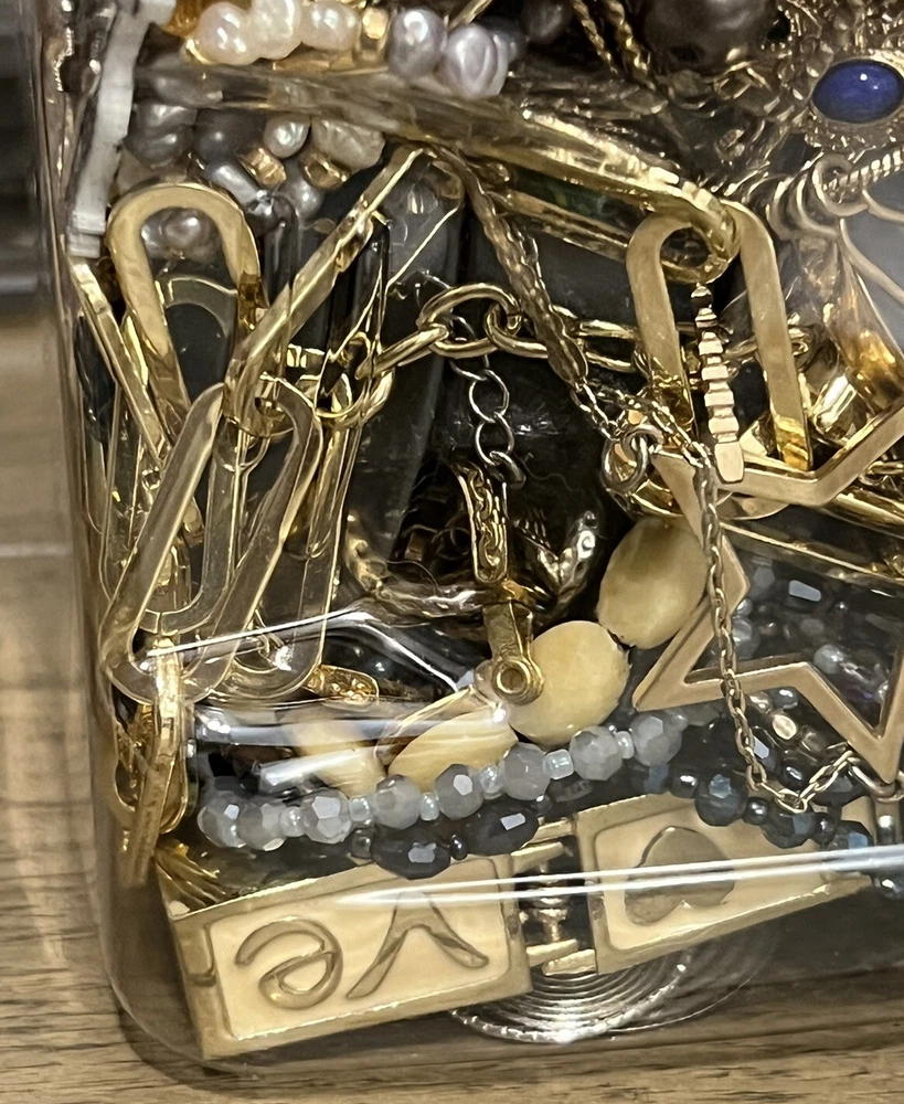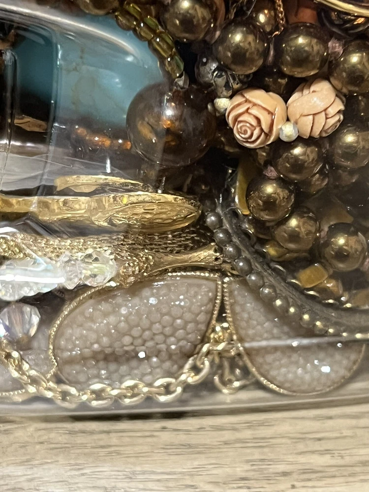 FYI- photos are sample photos. This will be a regular size jar available in clear blue mason jar too! The other listing are all for bigger jars! Takes a lot too fill them! This size may. Become are reg size jar . Just maybe changing presentation soon in jar type and size.! That is why this jar cost less!Typically it’s a jar that was created and. Already sold. So, any photos you have seen are jars that have been made for that customer one at a time and a lil personalized for you . I will message you after you purchase any of my jars. They are selling fast. Most pieces are basically the only one I have that identical especially vintage. I have a lot of vintage. More present day pieces that you may see in a photo I could have something similar.please be patient there always seems to be a wait. They take time, I work very hard to create . You can make one simple customization but it can’t be all silver or gold rem it’s a treasure hunt and a mystery jar. Curated jars are on another listing , they do take a good bit of time. The listing for that are only on the bigger jar but I will put a listing for a smaller curated jar up. You can always let me kno if it’s not up and I will create the listing.Rem the sooner you put your order in even if you see my time away is on it’s still better to get yourself in line lol no pressure tho. Just want you to be aware there is a delay on shipping due to the increase in orders. First come first serve I sell off two apps for these jars and jewelry has been clearing out but I have more vintage that I’m looking thru now. I truly appreciate everyone that has purchased from me especially since I’m new to selling on eBay., offers are welcome plz consider the fees for using their services bc you will receive jewelry in much more then the value im making. I kinda over do it some. Rem it’s a treasure hunt with no TRASH ALL WEARABLE. You will receive exactly what I stated vintage to now all wearable good condition. Some items may show wear that maybe vintage and if I think that it takes away from the piece I won’t add it but rem diamonds in the rough phrase. Below it overly explains. I’m editting and making another listing dif photos! Ty! This is a plastic square like jar type canister packed full all the way too typically the rim where sometimes I have to press down On the lid before it twist! No worries, I know better than to damage any jewelry. The canister w/ lid I’m finding it’s been A nice way to travel and keepPieces safe. It’s also reusable. I buy each case from Amazon some a lil dif shape then others . A few ounces smaller. This will be for a lil less of a price. Shorter and more squared and still wide rather….To me it’s for presentation and people love jewelry jars just as much as a mystery box made to be like a jewelry jar. I offer that too. Still all In presentation is super cute for gifts and the box you can message me on how many pieces bc you may need a few for gifts and then you can customize. They are very nice boxes I haven’t explained in detail on my listings but I have some for a five piece up to a 40 piece more then likely. They look wrapped and ofcourse I package them up to mail I don’t mail them like that. This canister is packed. I was trying to stay around a lil over a pound but for some reason I have made them over two and three pounds. These are mixed with vintage to now. Signed and unsigned pieces. I try to give everyone a variety . Each time a jar order comes thru I prepare in order they come. So, my sole focus is on your jar when I make yours granted depending how many are ahead it can take up To three days to purchase. If you have small preferences or request I can try to honor As long as it’s fair to everyone. I’m All about kindness and fairness And honesty and that goes quite far in my book bc we need more of that. It will be mixed materials plz don’t Buy this jar for good then be highly disappointed there isn’t any. All times you maybe get plated or filled or you could get lucky but this is a lot of costume, vintage, current, fashion, designer. Signed unsigned pieces. Boutique pieces just an array of jewelry. Sometimes I do run on particular kinds of vintage and I do have my own personal stash I will use to sell on ruby lane but honestly im down sizing tho I keep buying some amazing jewelry. Its all quite beautiful Even the ones w flaws I take out for crafts tho I have a massive load of harvest craft so by all means message me n get a great price n I can crate the listing. It started w my great grandmothers and then it almost became like a dream I loved it. I love the learning, the history is by far very interesting. Anyway I hope that I can finally down size enough to where I know where each type is at bc I do let go of some special Pieces bc im Not researching what I’m Putting in your jars ik having To just let go. It’s very hard for me bc a lot of it I want to sell but I can’t. There isn’t enough time in The next few years. I’m Not saying everything is collectible but to have a load of vintage and pretty decent just costume jewelry that I hold on too bc I knew per piece it will eventually sell plus on my other platform each purchase comes with a gift. Now I’m doing lots n Jars in both so they are going well but jars will phase out or down size bc if you continued buying them you would see just how many dif pieces I can put in there one week it maybe one way but I’m getting so mixed up just trying to get it ready bc I’m Really trying to give you a good mix. I Honestly enjoy it so much that it doesn’t bother me to lose money but I also have to think about if I want to continue and be able to give you the mix and exactly what I say vintage to now signed and unsigned. Plus not researching anything I kno is hurting bc I’ve dug into my newer stock Of vintage and I just know that I’m paying more per piece on a lot of it but so many pieces I’ve just gotten thru the years or r