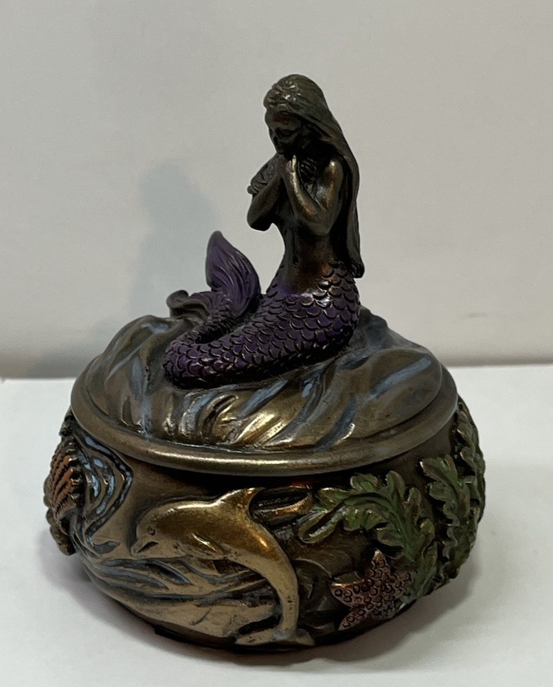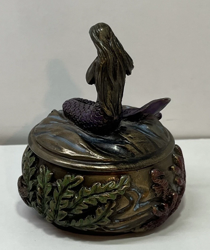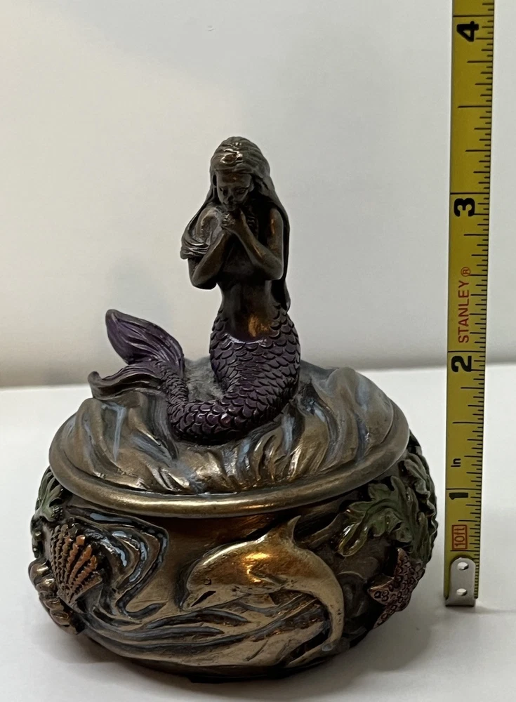 Ocean Mermaid Jewelry Trinket Box Mystical Aquatic Sea Creature Art Nouveau With Lid - This Unique Piece Is In Great Used Condition. Measurements included in images. Please thoroughly inspect all photos SHIPS CAREFULLY