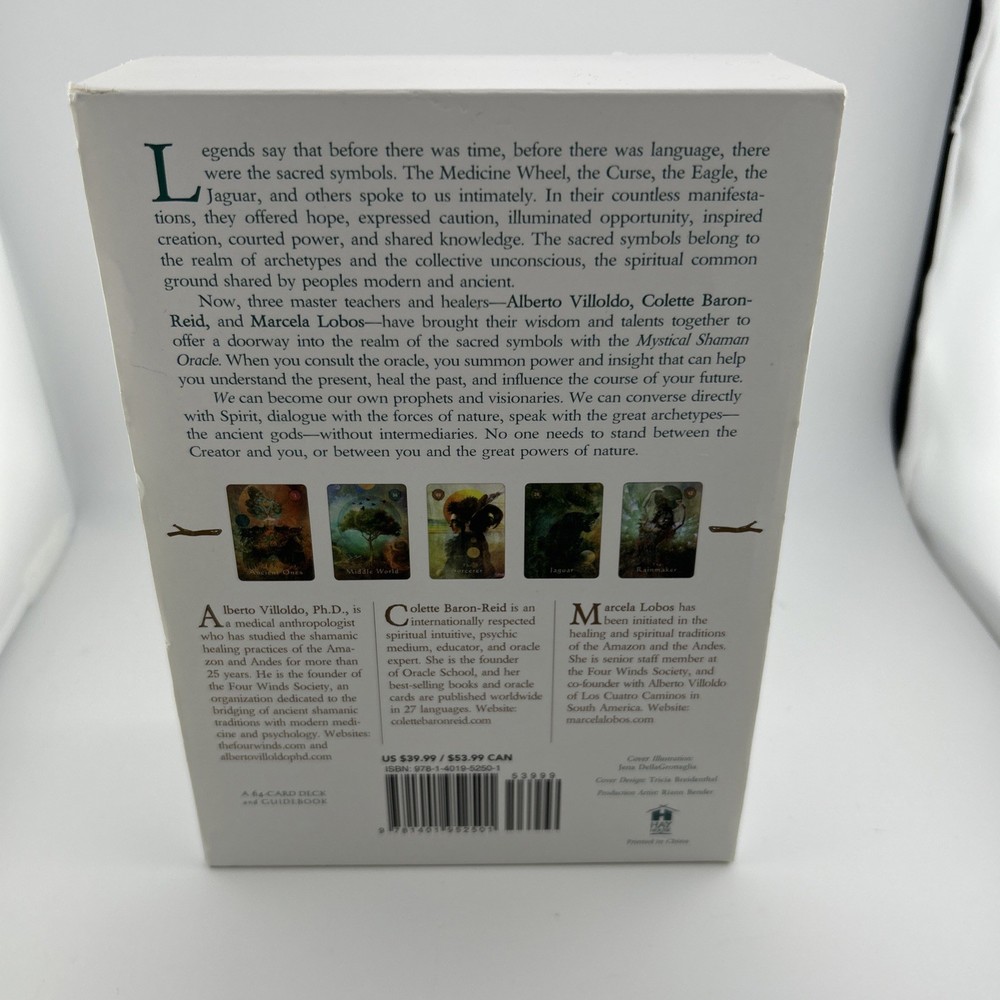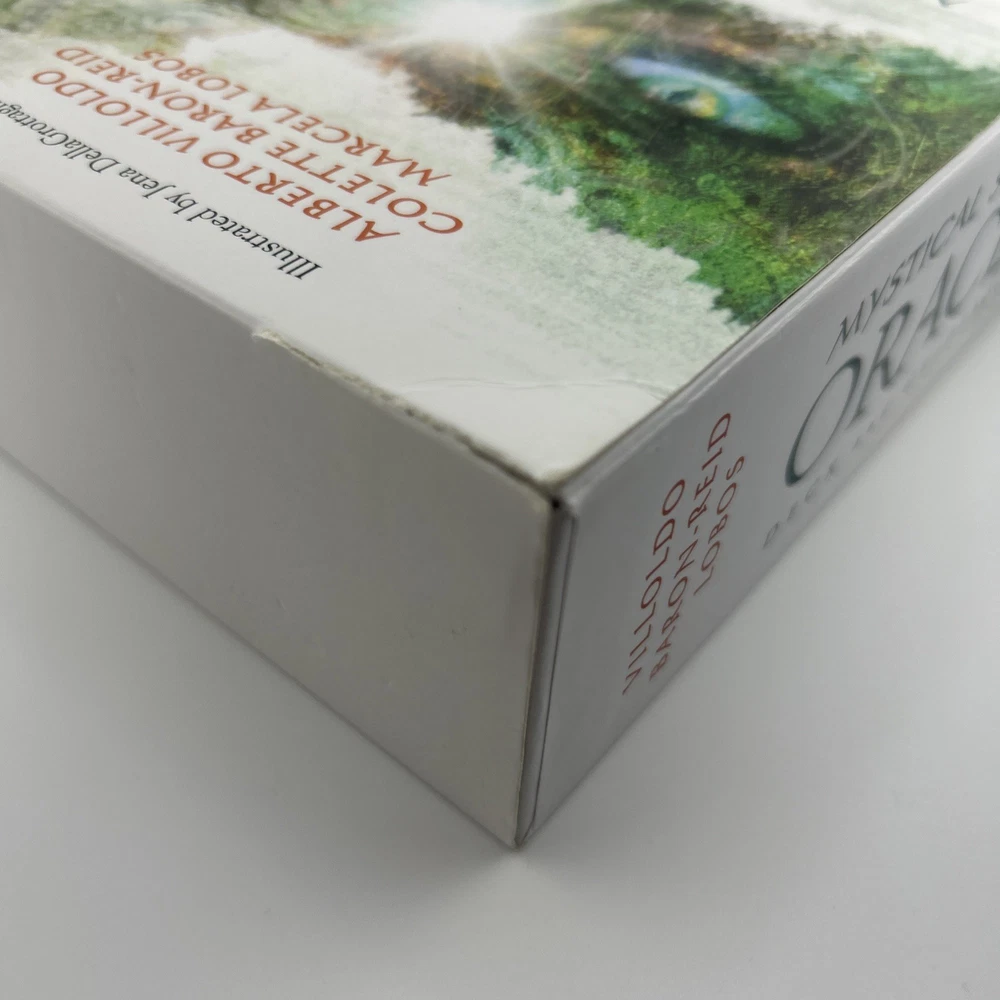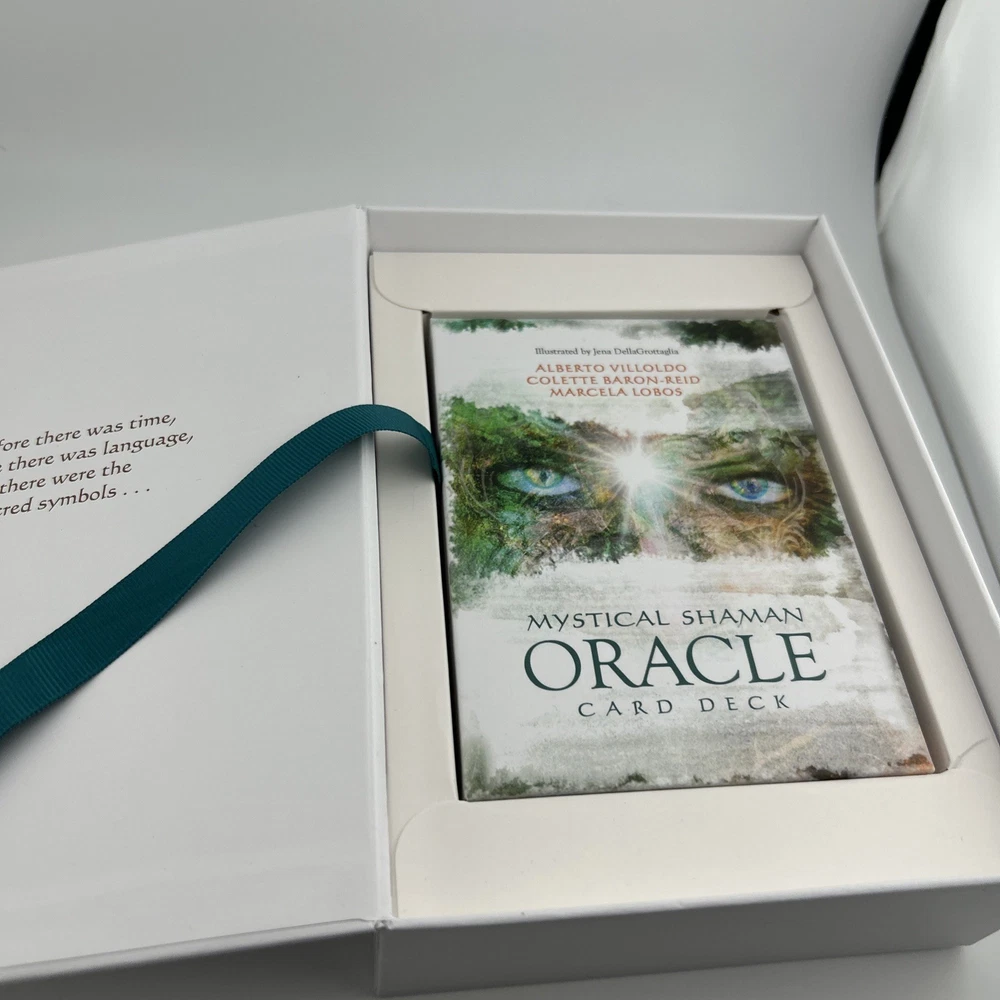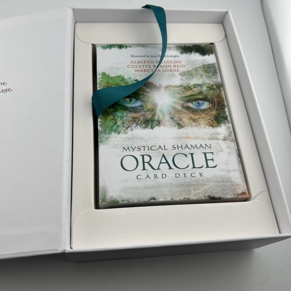 Mystical Shaman Oracle Divination Card Deck Book Game Baron-Reid Tarot. Card and book Never used. The outside box has a blue mark (likely permanent) , there is a tear on the edge of the box jacket and some sticker residue which can be removed. See photos as part of description