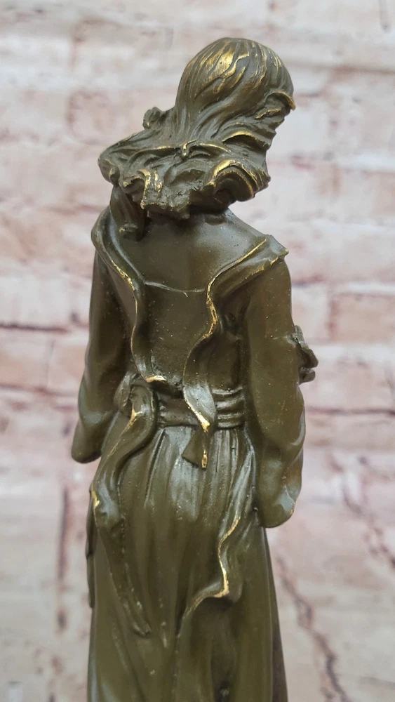 Mythical Athena Bronze Sculpture Statue Standing on Dragon Hand Made Artwork Mythical Athena Bronze Sculpture Statue Standing on Dragon Hand Made Artwork Condition : This sculpture is in perfect condition Bronze Dimensions with Marble Base: Height 10.5" X Width 4.5" Marble Dimensions: Diameter 4.5" Height without base:9.5" Weight:5 LBS Inventory:79GTS0525197 This striking bronze sculpture signed by A. Moreau depicts Athena, the revered Greek goddess of wisdom, war, and strategy, standing triumphantly atop a subdued dragon. Her commanding presence and poised stance reflect divine authority and unshakable confidence. With flowing garments and a focused gaze, Athena is portrayed in classical style, symbolizing strength and intellect prevailing over chaos and beastly forces. Handcrafted using the traditional lost wax casting method, this sculpture is hot cast in genuine bronze and finished with a rich brown patina that accentuates every intricate detail—from the goddess’s armor and robes to the textured scales of the dragon beneath her feet. The craftsmanship honors the mythological heritage while showcasing the artist’s mastery in bringing dynamic scenes to life in bronze. Mounted on a round black marble base, the sculpture exudes elegance and stability, making it a compelling centerpiece in any home, office, or gallery. A powerful tribute to Greek mythology and classical art, this signed work by A. Moreau is both a collectible treasure and an inspiring symbol of wisdom triumphing over adversity. Shipping Terms : Most of our items are shipped via USPS (United States Postal Service) mail or UPS. Most orders are shipped within 24-48 hours of purchase. Please be aware that not all items are available for USPS shipping due to size and weight. We do ship to Hawaii, Alaska, Canada, Puerto Rico, APO/AE, and U.S. Virgin Islands, however, an additional charge may be required. Please contact us before making any purchases in these areas. For Non-USA customers, you may be responsible for all duty, tax, brokerage fees that may be due upon delivery (shipping costs cover freight charges only). We also ship internationally. Please refer to the "Shipping and Handling" chart for the rates for each area. Payment : We accept just about any form of payment. PayPal, Master Card, Visa or American Express credit cards. Money orders, cashiers checks, and even personal or business checks. For governmental institutions, we will also accept a purchase order. Please understand that for personal or business checks we have to wait for the check to clear (usually 7 days) before shipping. Condition : New Detailed Hand Crafted Hot Cast Bronze Satisfaction Guaranteed. This is Stock Photo, Slight Color Variation!! Listing and template services provided by inkFrog