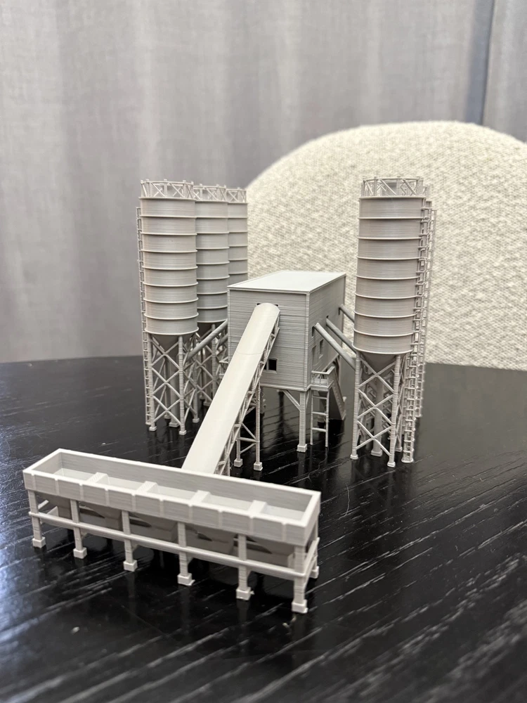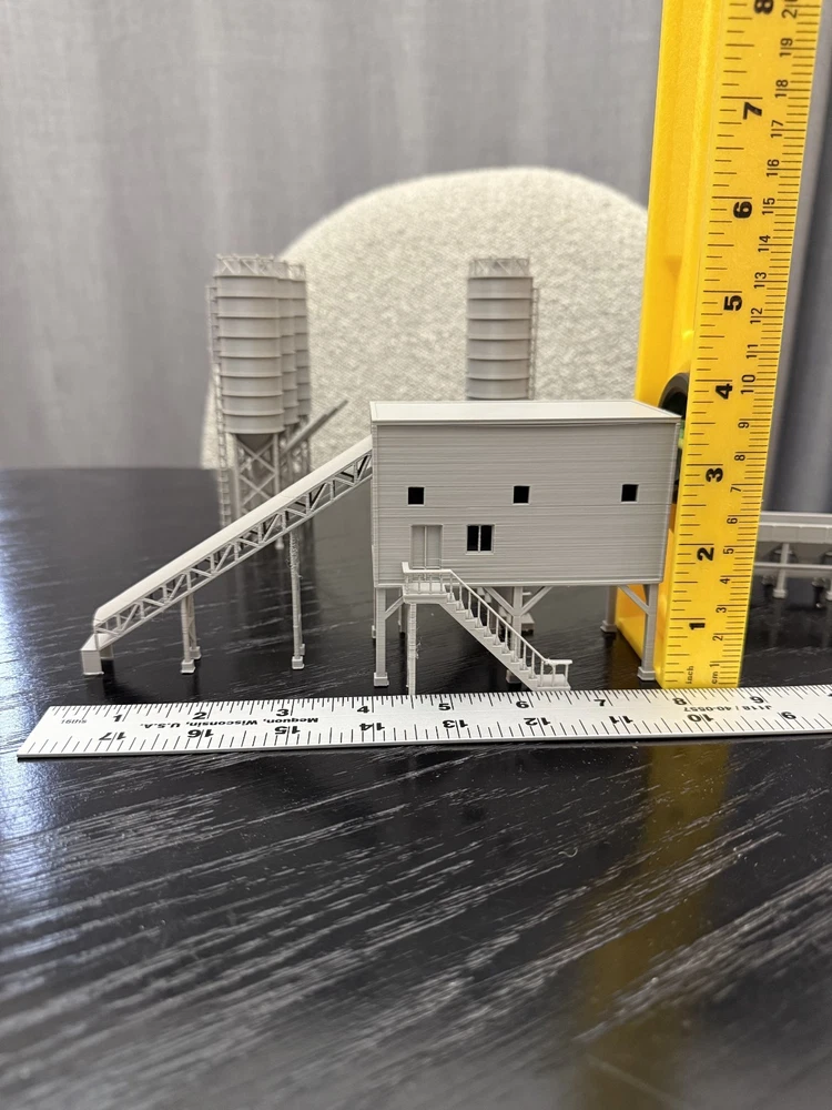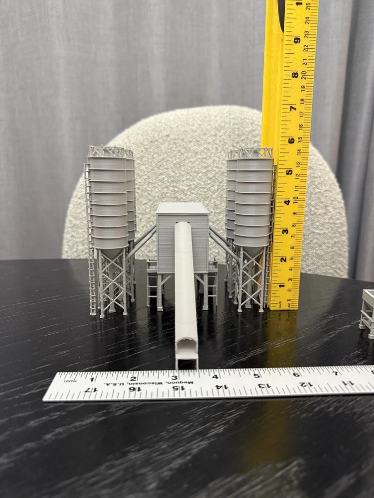 N Gauge 1:160 Scale Concrete Batching Plant Cement Factory. Perfect for your model train layout's industrial area and construction industry. Mostly assembled - Items come exactly how they look in the pictures. 6x tanks, 1x building, 1x hopper. Assembly is simply putting the items next to each other. The no base version allows for you to add more finishing details easily. Prefer a version fully assembled and on a base? Checkout my other listing! This is a Graham's Models original design. All items are made in the USA in Detroit, Michigan and will be shipped in 1-3 business days depending on current demand. I do combine shipping on all orders. Please message me with any questions! N Scale Buildings N Scale Cement Concrete Factory Plant N Scale Oil Refinery Pre Built N Scale Buildings N Scale Trains Buildings N Scale Model Building Based off a real world design. Have a suggestion for another design? Send me a message!
