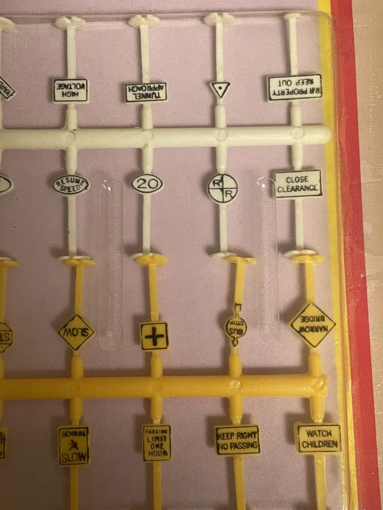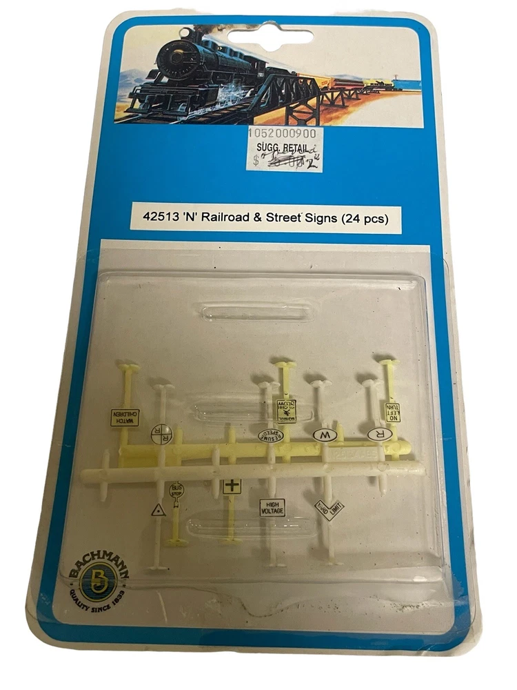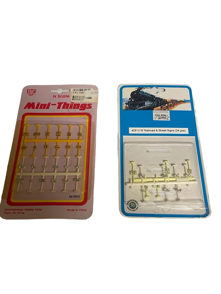 Elevate your N-scale model railroad with this set of 36 street signs. Made of durable plastic, these signs are perfect for adding realistic details to your layout. The set includes 1 incomplete card from Bachmann and 1 full card from IHC, both featuring a variety of types of signs. These signs are ideal for model railroaders who want to add a touch of authenticity to their layouts. Whether you're creating a bustling city or a small town, these street signs will help bring your model railroad to life. Don't miss out on this opportunity to enhance the look and feel of your layout.