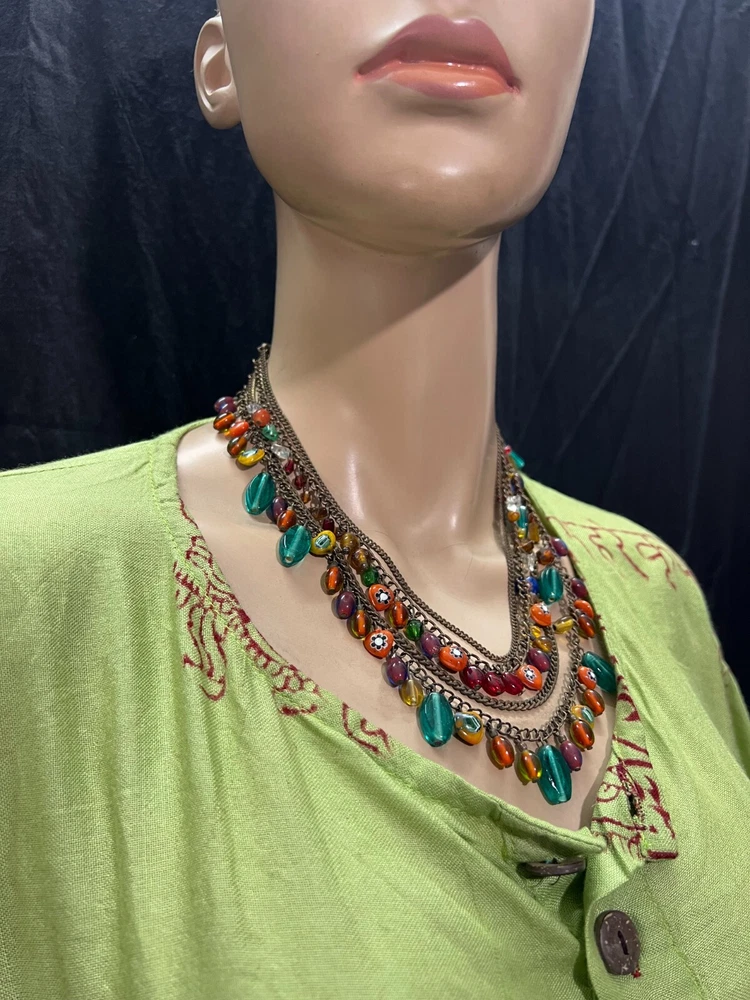 USPS/UPS No long wait Product SHIPPED FROM the USA Just 5 to 6 days delivery time at a competitive price. Love the item but not the price? Make me an offer. No reasonable offer refused. Multi color strand beads tribal Long NECKLACE It is an Ethnic Naga, tribal, strand layered design multi color beads handmade Necklace. The beads are made of Glass , resin straw in the mix metal antiqued copper tone chain. It is a very well made and (Brand new) Necklace from India. You can wear it as an ethnic tribal Jewelry or use it as a casual Jewelry. All these handmade Product's size may vary! Size :- Approx. Necklace is about 19" Long (end to end) Center drop of the necklace is 2.5" approx Material :- Glass, Resin Metal :- Mix Metals Color/t o ne :- Multi color /Copper . Weight :- 86 Grams Approx. Type :- Fish hook Quantity :- 1 pc. (N255/DBA-HQ /EDC/Sec J ) Second lot R USA 7/30/2024 FOR WHOLESALE CONTACT US Care instructions: To maintain the beauty and integrity of this handmade glass bead necklace: Avoid exposing it to harsh chemicals or extreme temperatures Store it in a cool, dry place when not worn Avoid twisting or bending the cord or chain excessively Clean with a soft cloth and mild soap solution if needed Buying handmade products comes with a range of benefits that can be quite compelling. Environmentally Friendly : Handmade items generally have a lower environmental impact compared to mass-produced goods. They often require fewer resources and less energy to create. Additionally, small-scale production usually involves less waste and fewer pollutants. Better for the Economy : Purchasing handmade products supports local artisans and small businesses. This not only helps create jobs but also keeps money within the community, which can contribute to a more robust local economy. Purchases You Can Feel Good About : Buying handmade can give you a sense of satisfaction knowing that your purchase supports individual creators and ethical practices. It often involves fair trade practices and contributes to sustainable economic development. You Will Feel the Human Touch : Handmade items often carry a unique personal touch that mass-produced items lack. The craftsmanship and attention to detail in handmade products reflect the skill and passion of the maker, making each piece distinct and special. Value Over Time : Handmade products, particularly those that are well-crafted, can appreciate in value over time. For example, antiques or heirloom-quality items often gain sentimental and monetary value as they age, making them potentially valuable investments. Overall, choosing handmade products can lead to a more thoughtful, sustainable, and rewarding shopping experience.