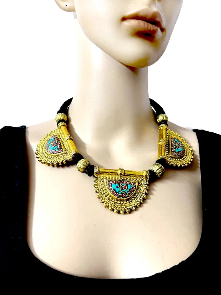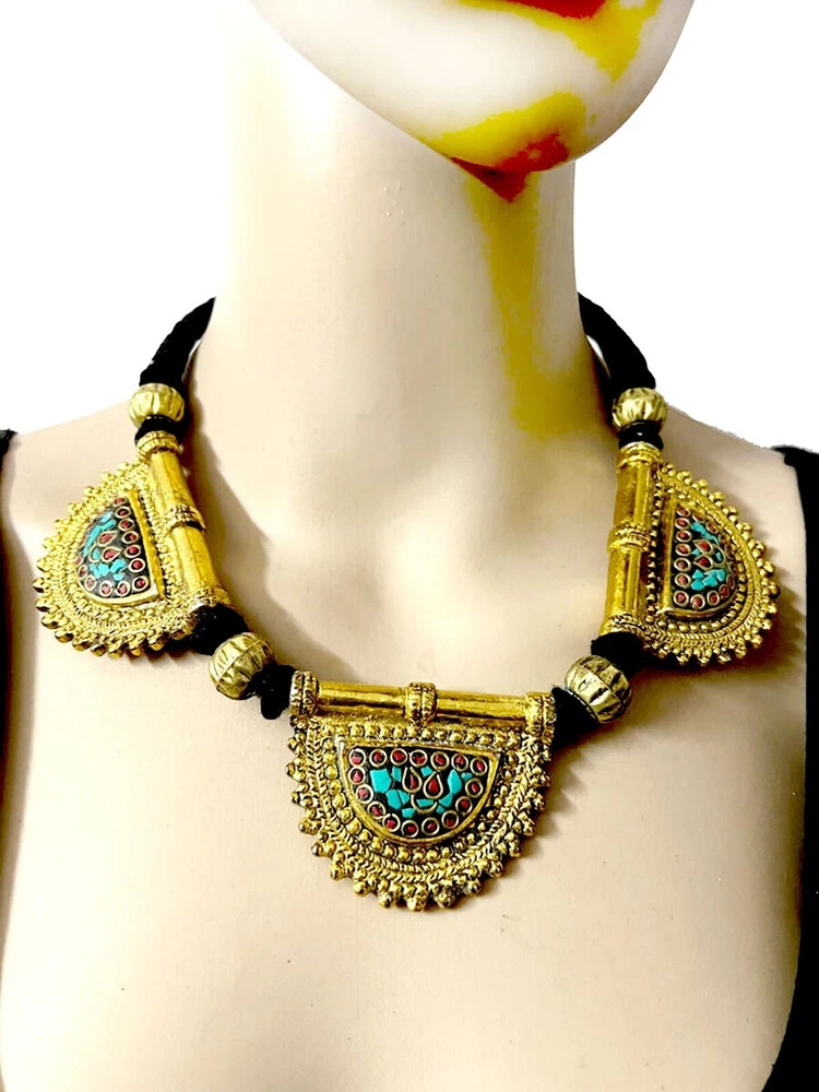 Color: Black, Blue, Red, Gold Tone Handmade: Yes Style: Choker, Statement Department: Women Ethnic & Regional Style: Asian Base Metal: Mix Metal Secondary Stone: Not Applicable Occasion: Anniversary, Birthday, Graduation, Mother's Day, Valentine's Day Seller Warranty: Yes Pendant Shape: Not Applicable Material: Cotton, Resin Closure: Toggle Chain Type: Cord Main Stone Color: Blue, Red, Black, Gold Tone Brand: Boho Diamond Clarity Grade: Not Applicable Total Carat Weight: Not Applicable Cut Grade: Not Applicable Theme: Ethnic Country/Region of Manufacture: India Main Stone: Not Applicable Necklace Length: 20 in Vintage: No Tribal Affiliation: Tibet, Naga, Banjara Diamond Color Grade: Not Applicable Pendant/Locket Type: Amulet Type: Pendant Signed: No Antique: No Seller Notes: “It is a Brand new and Very well made. No damage and Unworn.” Setting Style: Not Applicable Metal: Mix Metal Country of Origin: Tibet Metal Purity: Not Applicable Main Stone Creation: Unknown Main Stone Treatment: Not Applicable Customized: No Main Stone Shape: Not Applicable