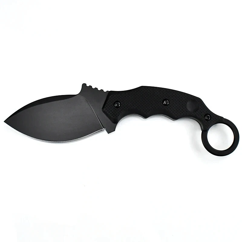 This ain't your average fixed blade. This is a beast built for serious carry—designed with a tactical profile, full-fisted grip, and a wicked wide drop point blade. Whether you’re running security, busting through brush, or just like a blade that means business, this one’s for you. Crafted from N690 steel , it holds a sharp edge like it’s mad at the world. The blade measures 3.46 inches long and 0.14 inches (3.5mm) thick, with a black finish that reduces glare and adds attitude. The full length comes in at 8.27 inches , giving you power without being a burden. The handle’s 4.25 inches , contoured with finger grooves for a solid grip and finished off with a tactical ring pommel for fast draws, reverse grips, or just showing off. Sheath? You bet. It comes with a molded ABS sheath and a high-strength belt clip that locks up tight but draws fast when you need it. The jimping on the spine and choil gives you extra control where it counts. Specs: Blade Material: N690 stainless steel Blade Thickness: 0.14 in (3.5 mm) Blade Length: 3.46 in (88 mm) Handle Length: 4.25 in (108 mm) Overall Length: 8.27 in (210 mm) Net Weight: 6.24 oz (177 g) Gross Weight: 10.58 oz (300 g) with sheath Sheath: ABS, tactical belt clip included Profile: Wide drop point with jimped spine Grip: Textured synthetic with ring pommel Solid. Sharp. Built like a fist wrapped in steel. This is one of those blades that’ll earn its spot on your belt real quick. Ships from Texas. Remember, stay sharp, stay ready, shoot straight!