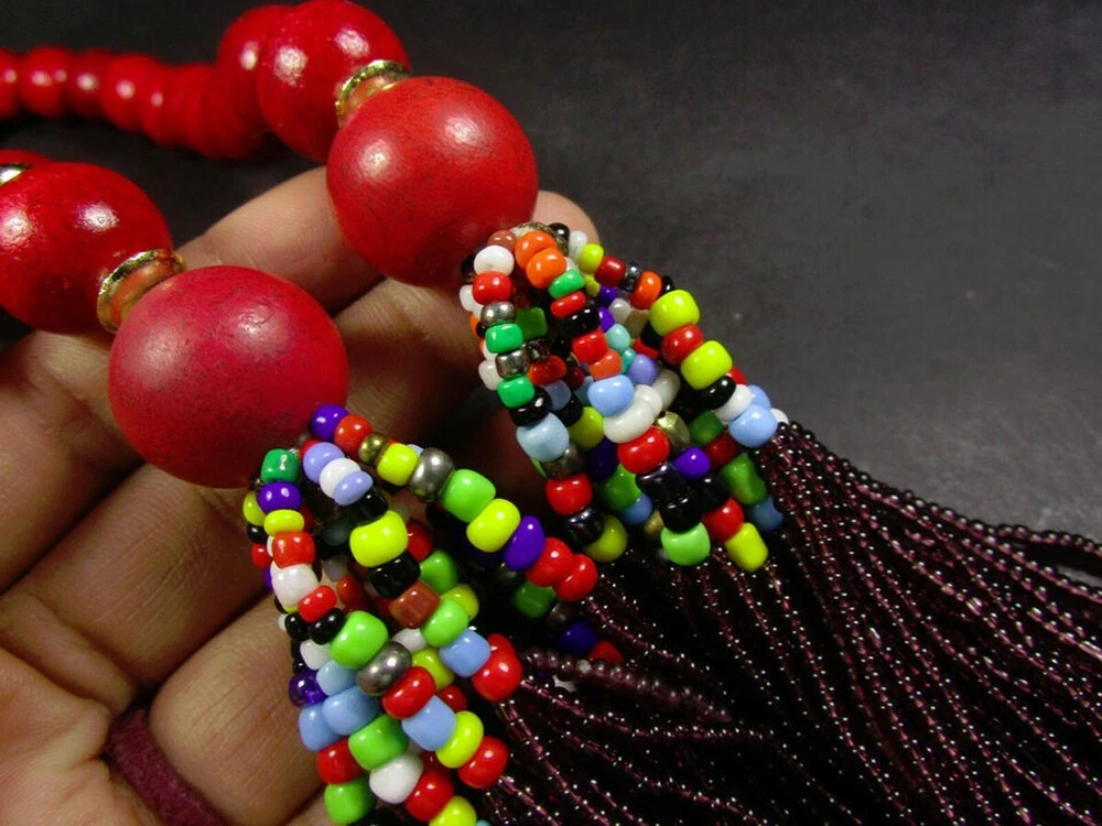 USPS No long wait Product SHIPPED FROM the USA Just 5 to 6 days delivery time at a competitive price. OFFER ME THE PRICE Tribal Multi-Color Strand Long Handmade Necklace This stunning ethnic necklace features 48 strands of Naga glass beads, interspersed with wood and brass-tone beads, all handcrafted in India. It’s finished with a distinctive bovine bone piece at the closure, adding a touch of authenticity and charm. Length: Approx. 33.5 inches (end to end) Materials: Bovine bone, glass, wood, brass-tone beads Color/Tone: Multi-color with brass accents Weight: Approx. 230 grams Style: Versatile as ethnic tribal jewelry or casual fashion accessory Note: As a handmade item, size and appearance may vary slightly Embrace the rich cultural heritage and vibrant style with this eye-catching necklace! This versatile necklace can be worn as a statement piece of ethnic tribal jewelry or as a casual accessory. Each handmade piece is unique, so size and design may vary slightly. Brand new and expertly crafted, this necklace is a distinctive addition to any jewelry collection. An ideal gift for the upcoming holidays, blending cultural richness with contemporary style. Please note that due to the handmade nature of the product, sizes may vary slightly. Buying handmade products comes with a range of benefits that can be quite compelling. Environmentally Friendly : Handmade items generally have a lower environmental impact compared to mass-produced goods. They often require fewer resources and less energy to create. Additionally, small-scale production usually involves less waste and fewer pollutants. Better for the Economy : Purchasing handmade products supports local artisans and small businesses. This not only helps create jobs but also keeps money within the community, which can contribute to a more robust local economy. Purchases You Can Feel Good About : Buying handmade can give you a sense of satisfaction knowing that your purchase supports individual creators and ethical practices. It often involves fair trade practices and contributes to sustainable economic development. You Will Feel the Human Touch : Handmade items often carry a unique personal touch that mass-produced items lack. The craftsmanship and attention to detail in handmade products reflect the skill and passion of the maker, making each piece distinct and special. Value Over Time : Handmade products, particularly those that are well-crafted, can appreciate in value over time. For example, antiques or heirloom-quality items often gain sentimental and monetary value as they age, making them potentially valuable investments. Overall, choosing handmade products can lead to a more thoughtful, sustainable, and rewarding shopping experience. FOR WHOLESALE CONTACT US N7588/JFA-HQ/D) R USA 7/10/2024 Sec D