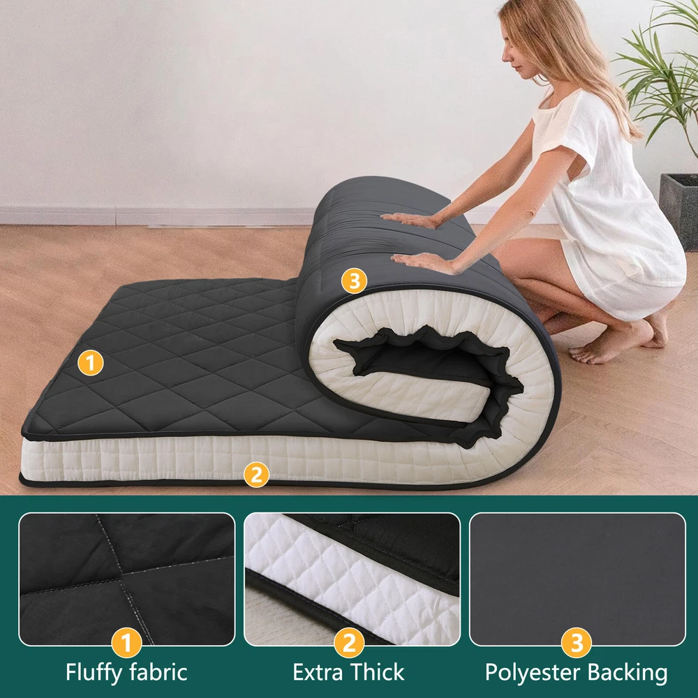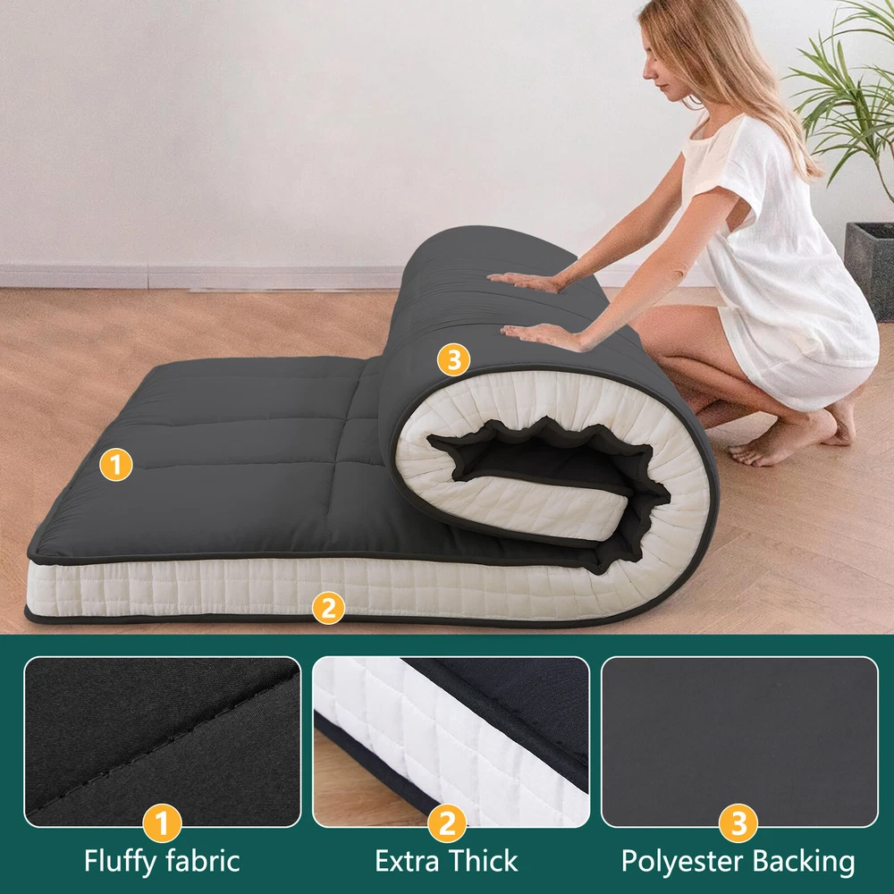 NAIZEA Japanese Floor Mattress Japanese Futon Sleeping Pad Guest Bed Gray Black