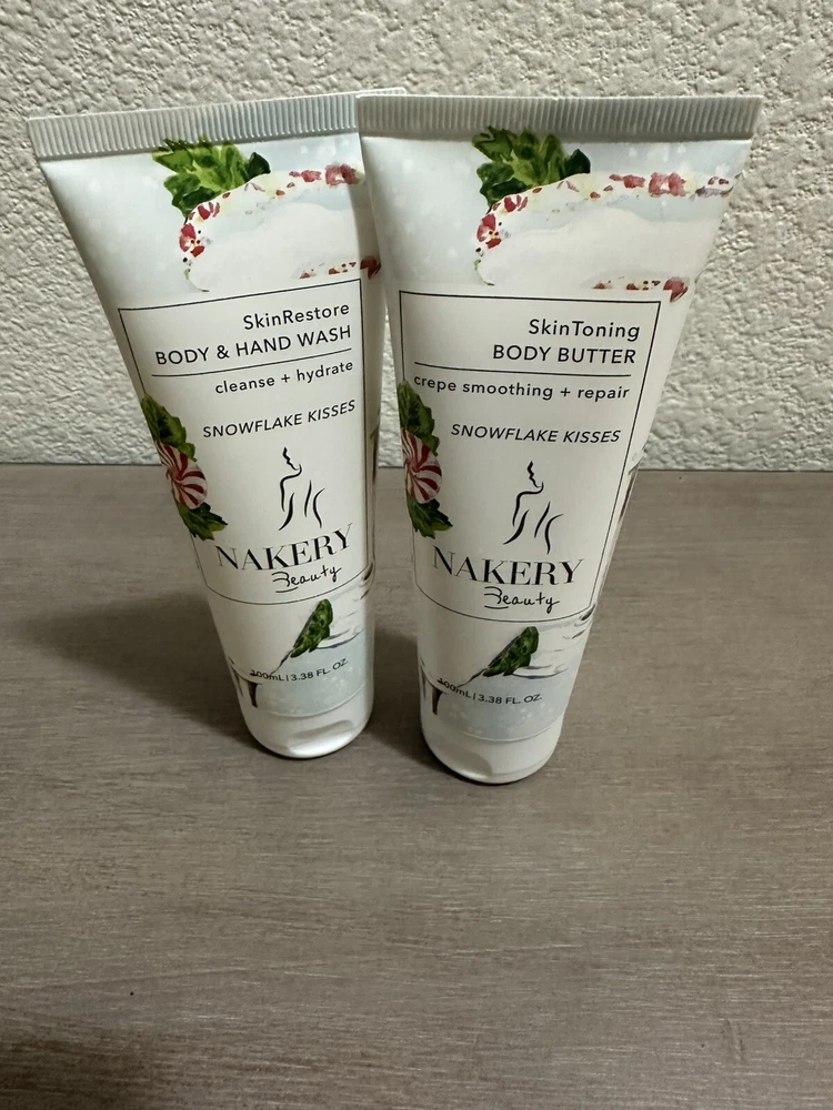 NAKERY BODY BUTTER & HAND & BODY WASH Pair-“Snowflake Kisses”-3.38oz ea.-NEW.