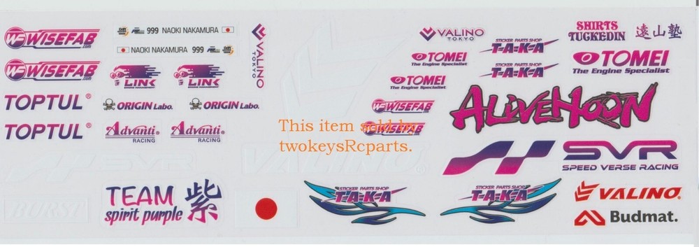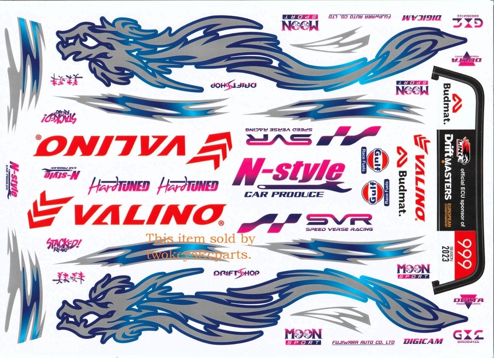Decal Sheet for 1:10 radio control vehicle use. Theme-" Naoki 2023 " to suit a Nissan Silvia S15 1:10th scale drift car Set consists of - 1 sheet each 300mm x 210mm plus 1 sheet 300mm x 110mm Pictures form the description-so check them out. NEW - Supplied in plastic bag. Enhance a plain paint job with very little effort. Part # 961 Check out other great bargains in my E b a Y store , including more Decal Sheets, parts and accessories. I am not a "drop shipper", all products are in stock in Australia being sold by an Australian seller. POSTAGE - AUSTRALIAN CUSTOMERS . If you want to use the Express Post service please buy one item and select Express post, then buy any other items you want with regular post (the default option). All items will be sent together via Express Post service……… INTERNATIONAL CUSTOMERS . For post quotes for multi item orders please message me. Thanks. All duties and taxes (if applicable) are the responsibility of the buyer. If you have any questions or special requests regarding this please feel free to message me. Manufacturers are constantly improving products and changes are made without prior notice. This means that changes can be made to products (including slight colour changes) from time to time. These changes in no way constitute any intent to change the basic description of an item, nor do they constitute a reason for an item’s return or warranty replacement. Return Policy: Any returns will be handled as per Ebay’s return policy. Returned items must be new, unopened and undamaged. Opened returns will attract a 50% “reduced value” fee. Any unrecoverable costs and fees incurred (by me) will be deducted from any refund issued. Warranty: items have a 30 day warranty, except drift wheels – which is ‘dead on arrival’ only. Warranty doesn’t cover crash damage, poor maintenance, misuse or incorrect assembly. Warranty covers sold items only.