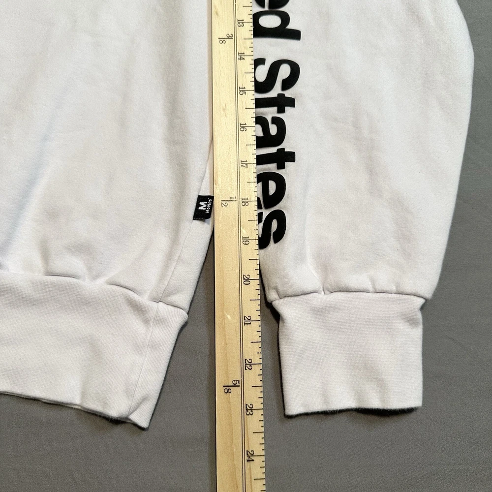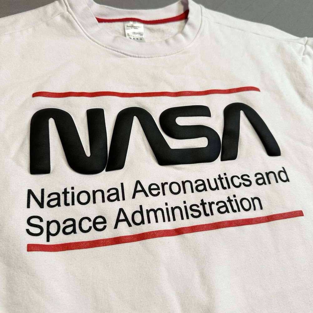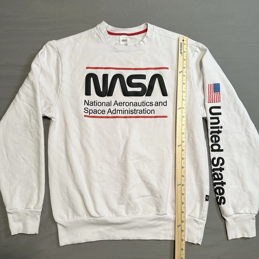 Clean, stark white NASA pullover sweatshirt with United States sleeve detail. Nice slightly raised printing and super soft fleece interior. Pre-owned but barely worn. Cotton/elastic blend for easy care and comfort, classic unisex fit. Lay-Flat Dimensions Length: 24” Sleeve: 23” Shipping: All items are packed with care. I do use recycled packing and shipping materials whenever possible. If you have any issues with your purchase, please reach out as soon as possible. Clothing and accessories have a 30-day return window, returned in the same condition sent, with original tags and labels as applicable. Return shipping paid by buyer. Thank you for your business and let me know if you have any questions!