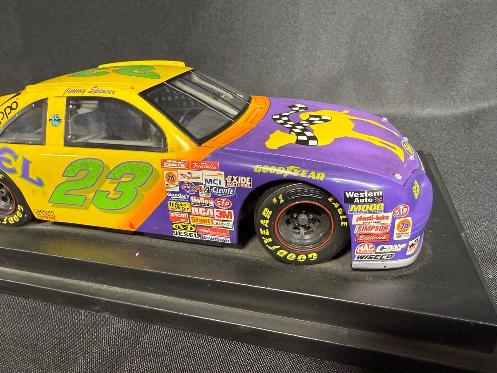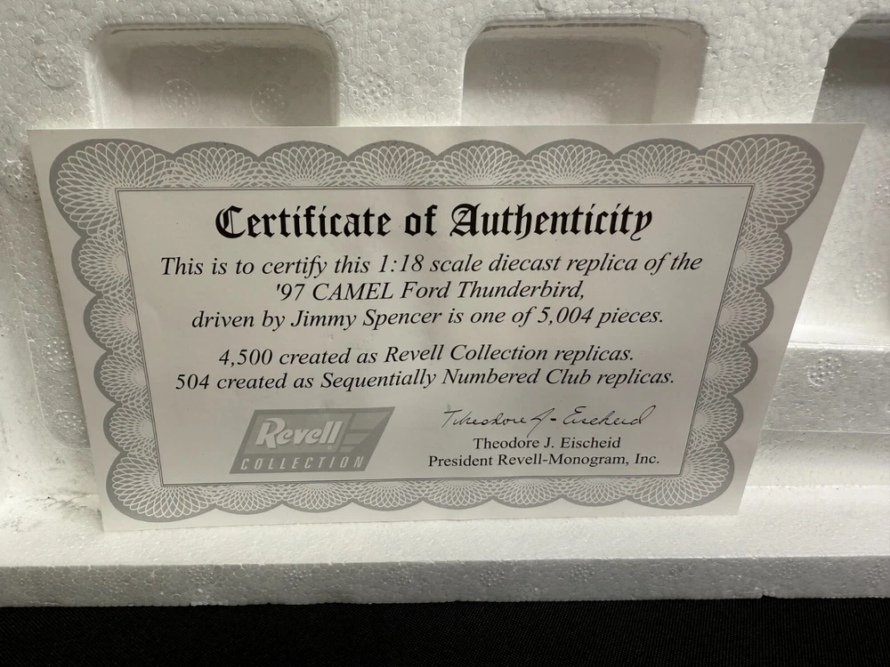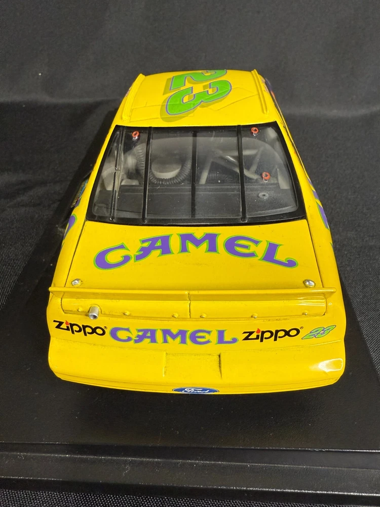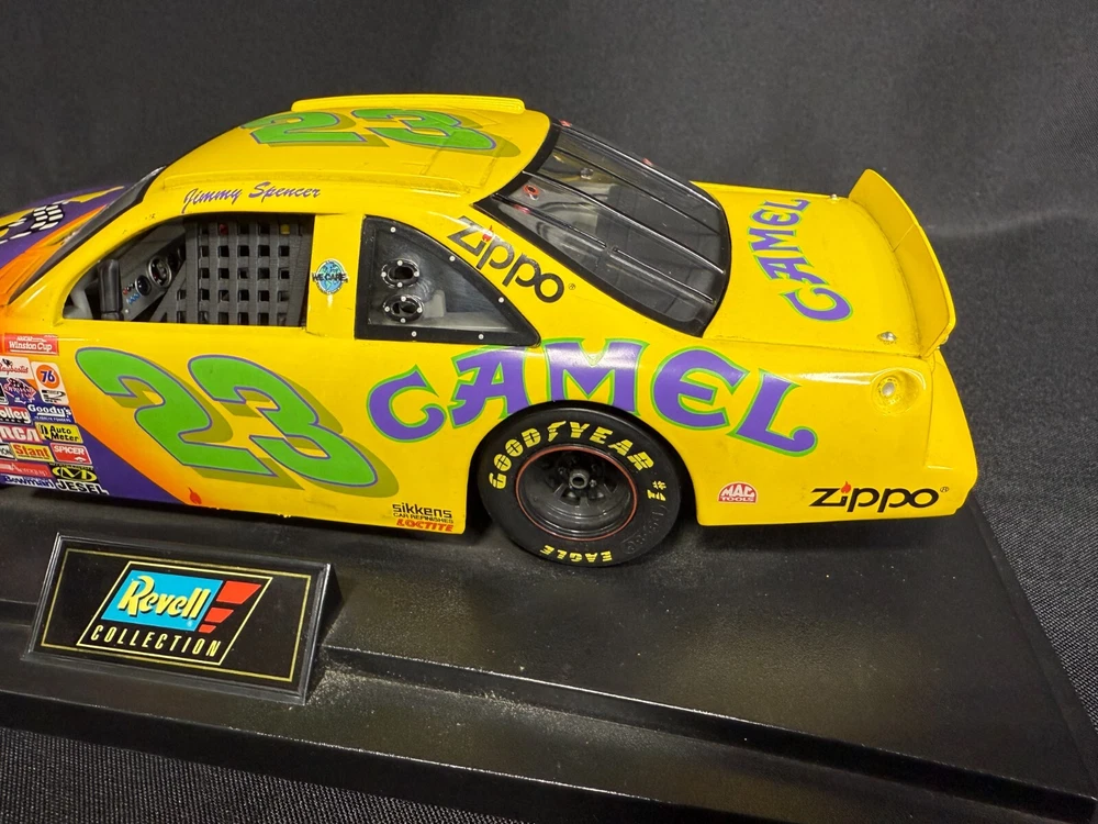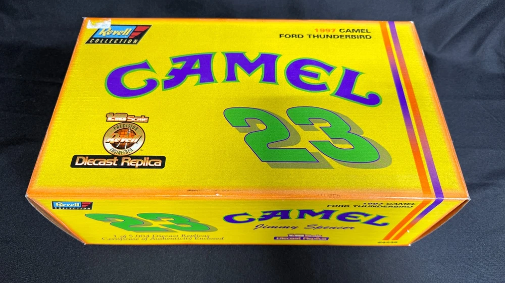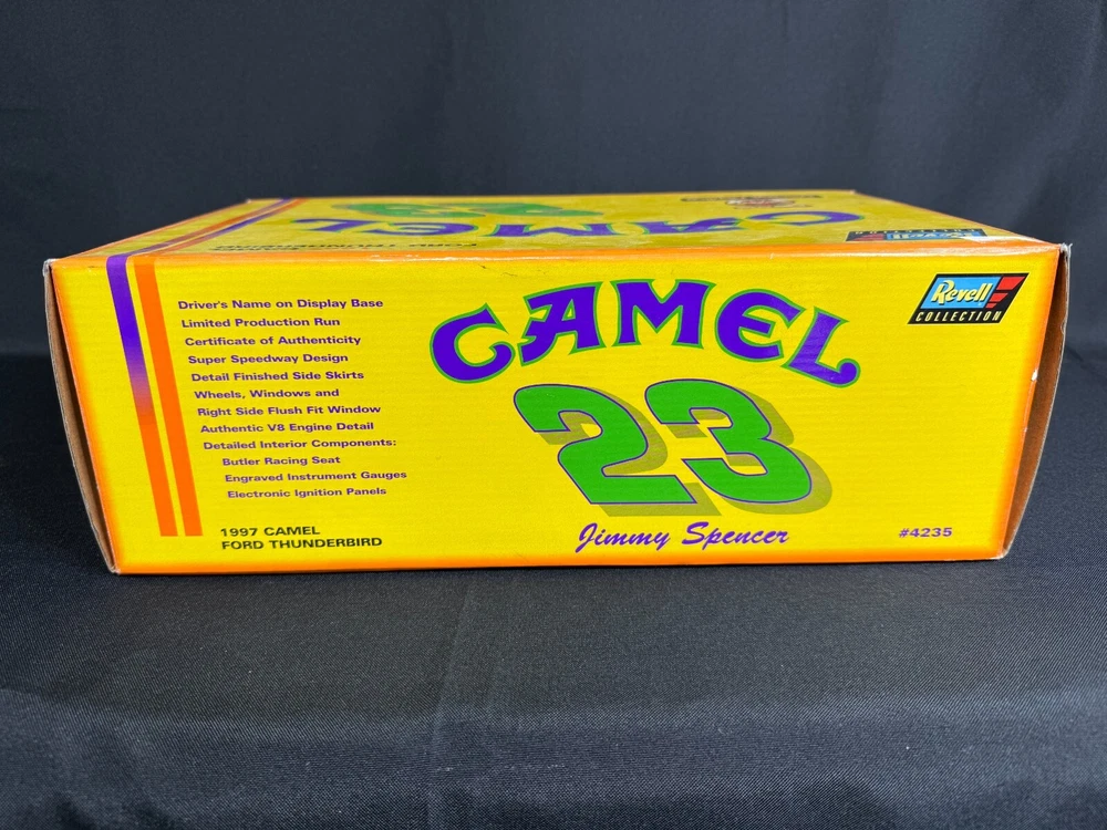 The NASCAR #23 Camel 1997 Ford Thunderbird Revell 1:18 Scale Diecast Model is a detailed replica of a Ford Thunderbird race car from the 1997 NASCAR season. Produced by Revell in 1:18 scale, this diecast model captures the essence of a racing car used in the sport, featuring the Camel branding and design elements specific to that year's Thunderbird model. Used - packaging may show signs of wear. SB