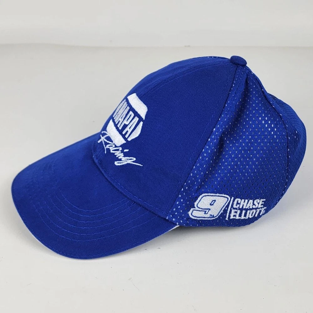 NASCAR #9 Chase Elliott Napa Racing Hendrick Motorsports Soft Mesh 6 Panel Hat * Brand: NASCAR * Color: Blue / White * Material: Polyester * Cap Style: 6 Panel Mid Profile * Peak Type: Sandwich with White Color * Size: One Size Fits Most * Back Closure Type: Velcro-Hook & Loop with Embroidered Napa Know How logo * Features: Embroidered with Napa Racing front logo, #9 Chase Elliott on left side, & Hendrick Motorsports on right side Pre-Owned / Used: A product that has been used previously. View our listing for full details in our description and check out our photos provided. If there are any imperfections, it will be noted in the description and/or within the provided photos. We appreciate you looking at our listing. Before placing an order, feel free to ask any questions you may have about this item. Upon receiving your order, if you are not satisfied with your order, please contact us and we will address any issue.
