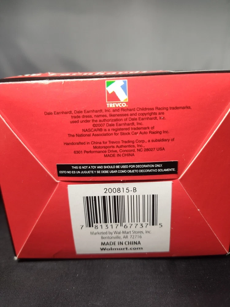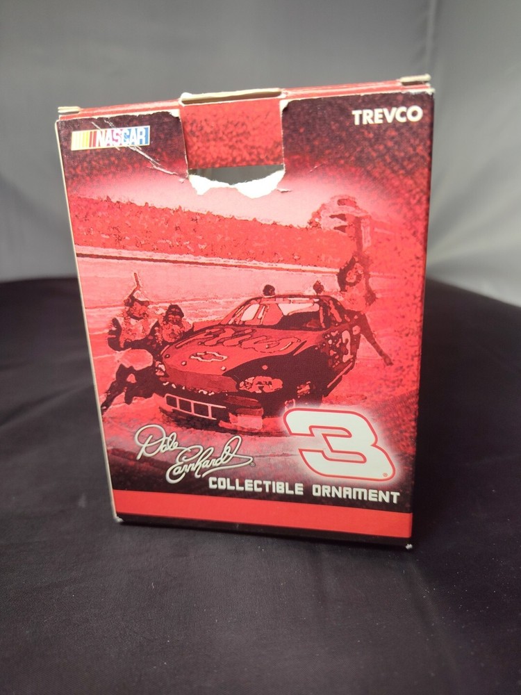 Get your hands on this unique collectible Christmas ornament featuring the iconic NASCAR driver, Dale Earnhardt. The small, red ornament is shaped like a car and boasts a vintage style with American Empire elements. It is a licensed reproduction from the Trevco brand and part of their Ornaments collection. This hanging ornament is perfect for any car racing fan and features mixed materials and plastic construction. The production technique is molded metal and it was manufactured in China in 2007. Add this unique piece to your collection of holiday and seasonal decorations.