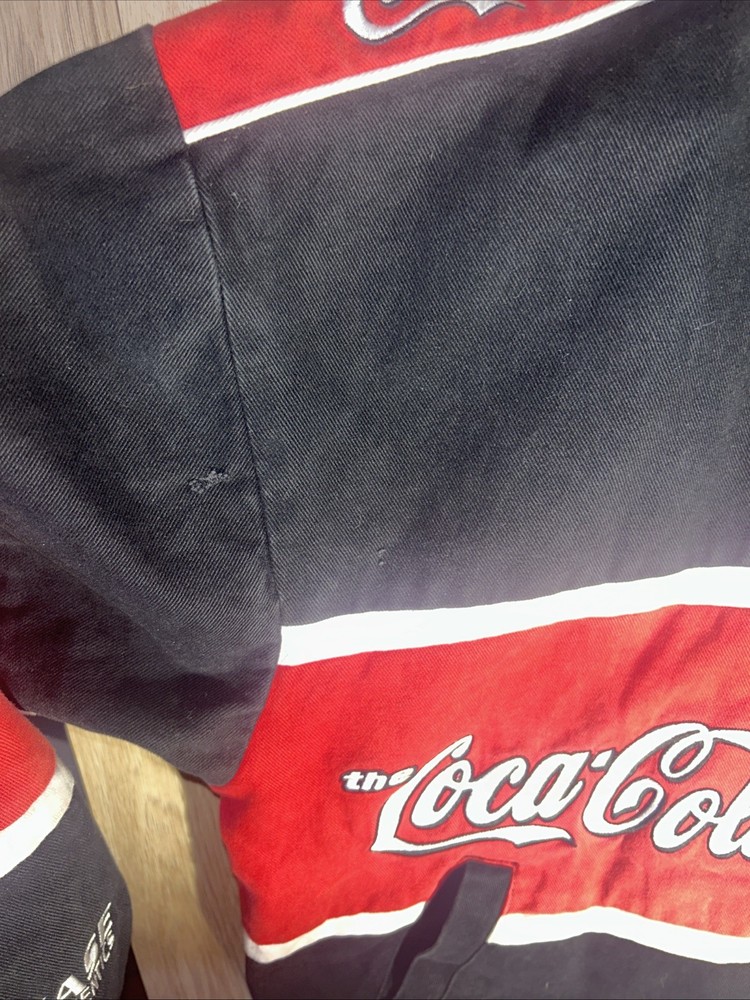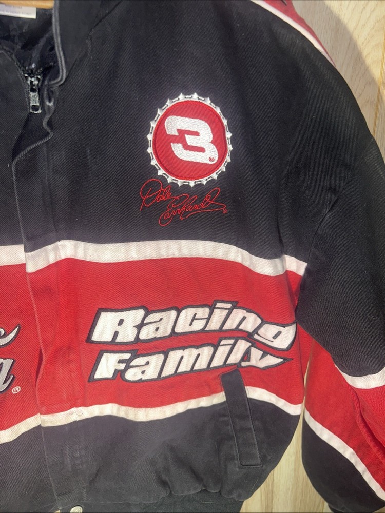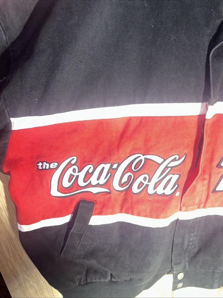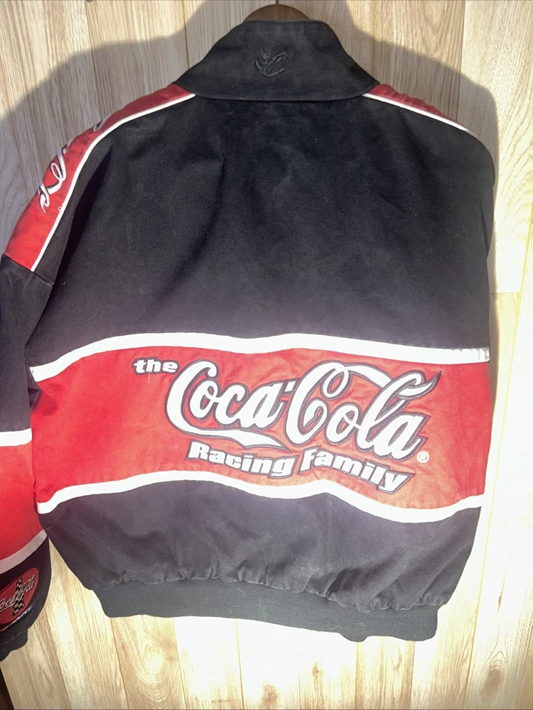 Embrace the thrill of the race track with this NASCAR Chase Authentics jacket, featuring the iconic Dale Jarrett #88 design. A true homage to the Coca Cola Racing Family, this jacket is a must-have for any auto racing enthusiast. The black and red color scheme is not only striking but also representative of Jarrett's memorable career. Crafted for comfort and style, this size XL jacket is an officially licensed NASCAR product, ensuring you're getting authentic quality. Whether you're watching from the stands or following the action from home, this jacket is perfect for showing your support for one of NASCAR's legendary drivers and the sport you love.