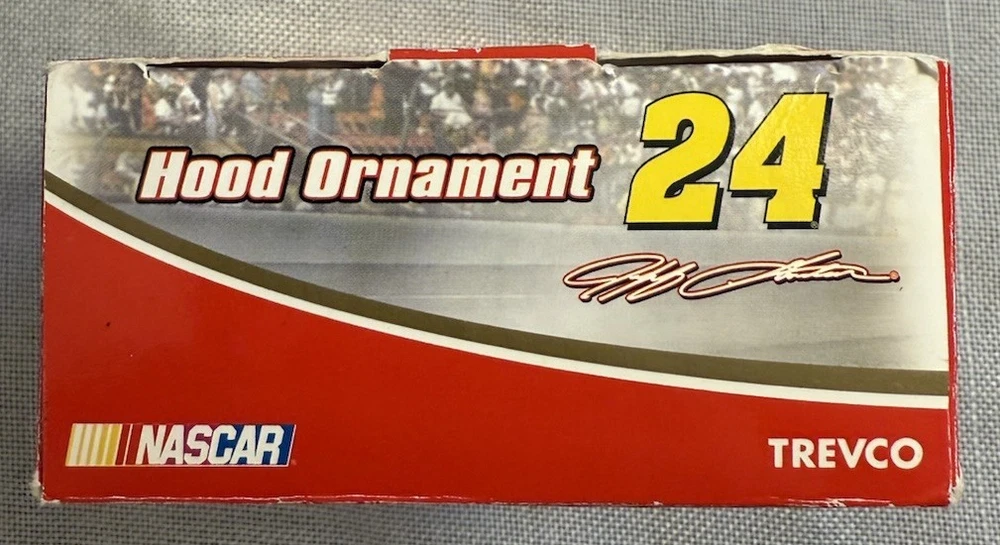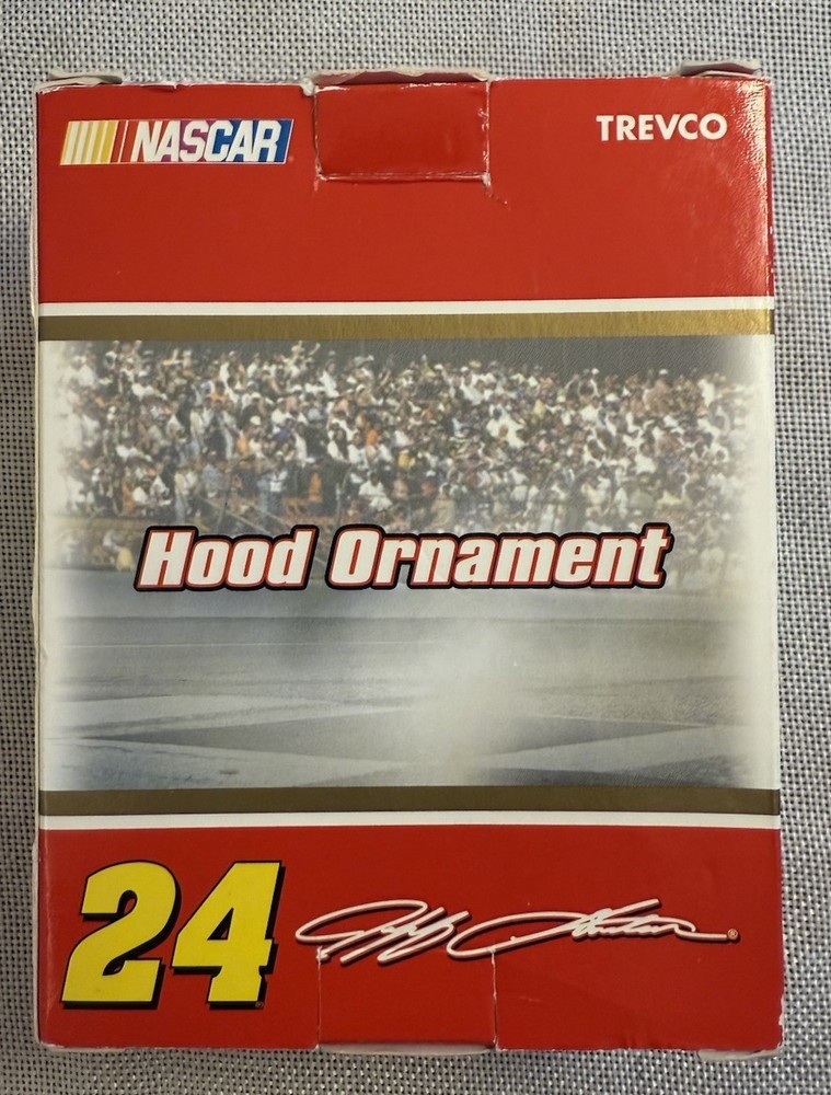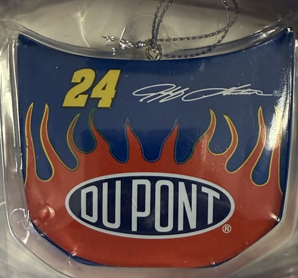 NASCAR Jeff Gordon DuPont Flame Hood Ornament Motorsport Christmas Trevco New, no issues, cool piece The product is a NASCAR Jeff Gordon DuPont Flame Hood Ornament, licensed by Trevco. This motorsport Christmas ornament features Jeff Gordon, a driver for Hendrick Motorsports, making it a must-have for fans of NASCAR and specifically Jeff Gordon. The ornament is a unique and collectible piece that showcases Gordon's iconic car and team, making it a perfect addition to any racing fan's collection. Mini g) for inventory purposes only