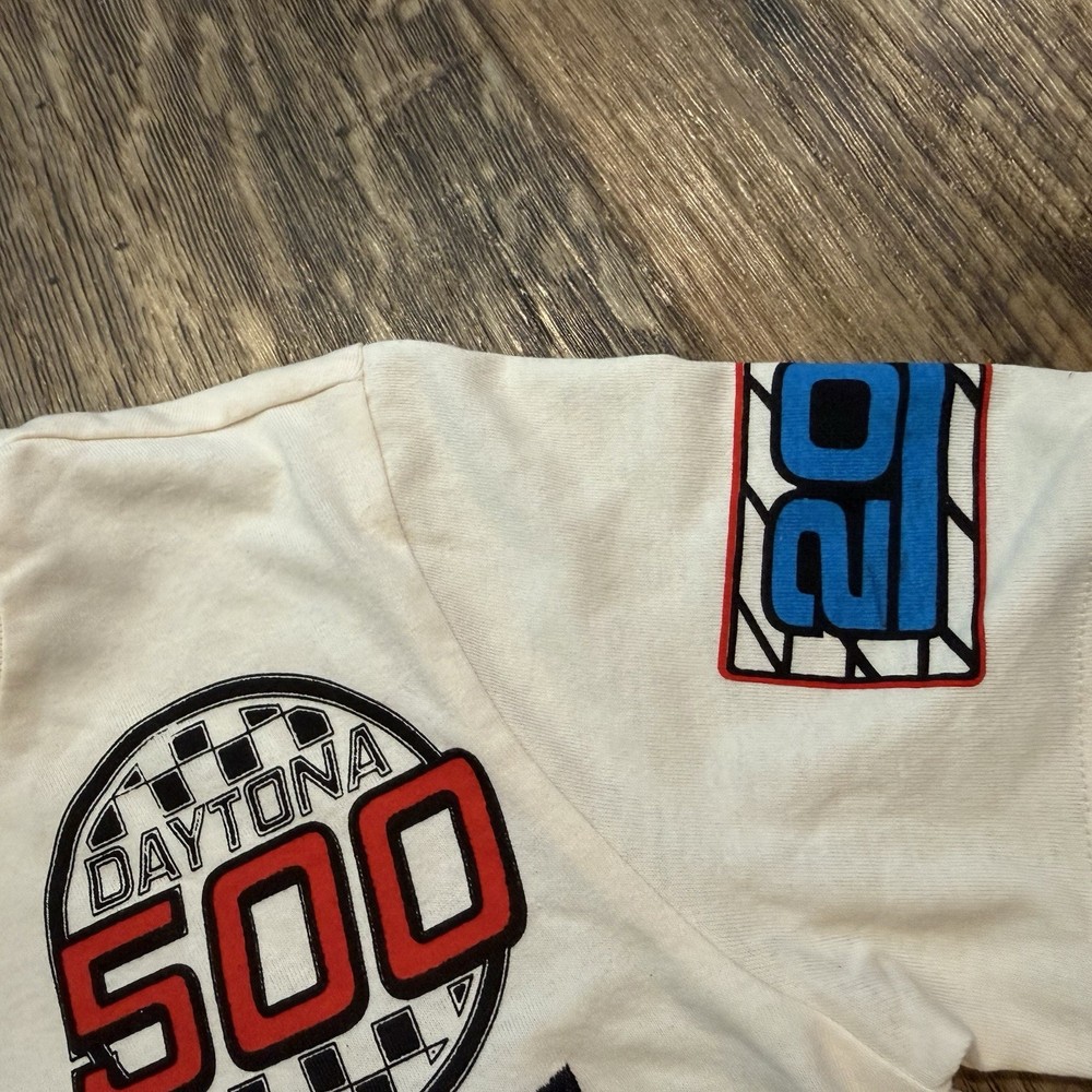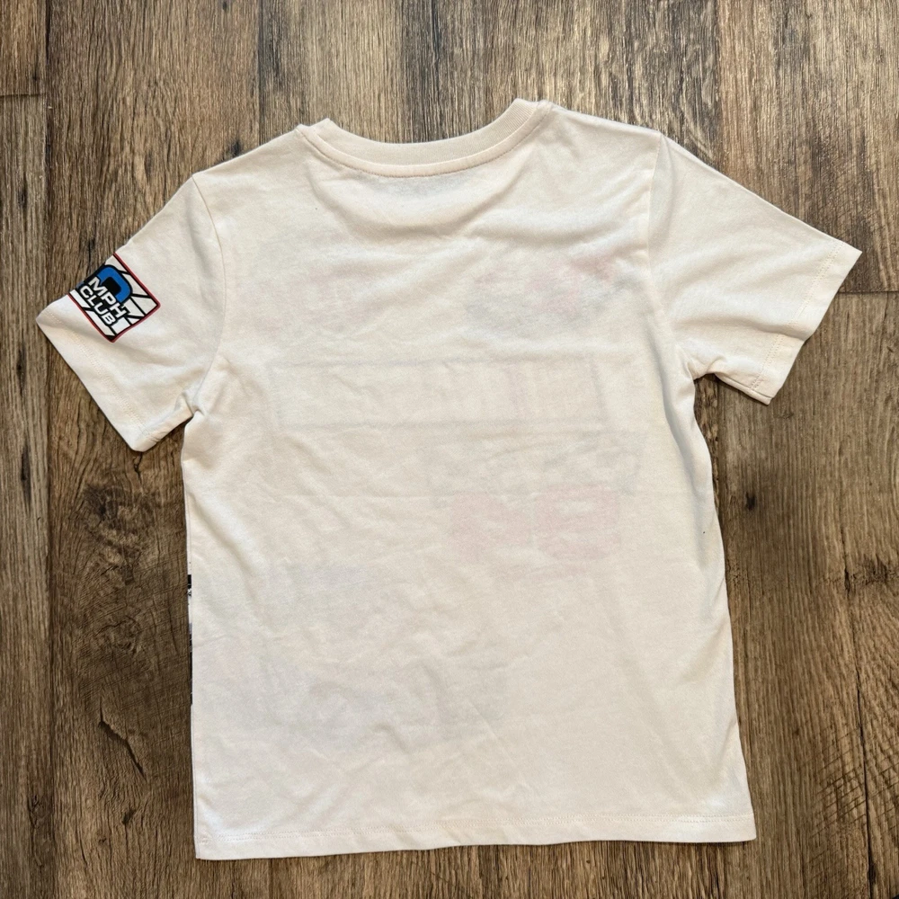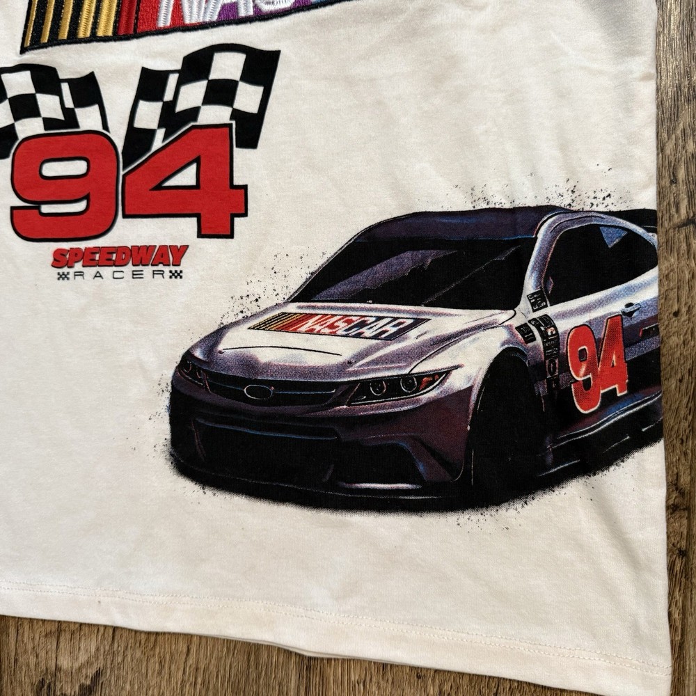 Boys NASCAR Daytona 500 graphic T-shirt featuring a detailed embroidered racing car design for a textured, high-quality look. This short-sleeve tee has a classic crew neckline and a comfortable regular fit, making it perfect for everyday wear, school, or play. Soft cotton jersey fabric that’s lightweight and breathable. New without tags — brand new and unworn; original tags are not attached. ✔️ Embroidered graphic detail ✔️ Soft, lightweight feel ✔️ Easy pullover style ✔️ Great for racing & NASCAR fans Measurements (Approx.) • Chest (pit to pit): 14–14.5 inches • Length (shoulder to hem): 19–20 inches Details • Department: Boys • Size: 6 • Color: Cream / Off-White • Style: Graphic Tee • Collar Style: Crew Neck • Fabric Wash: Medium • Activity: Casual, Play, School Please review measurements for best fit. Fast shipping from a smoke & pet free home.